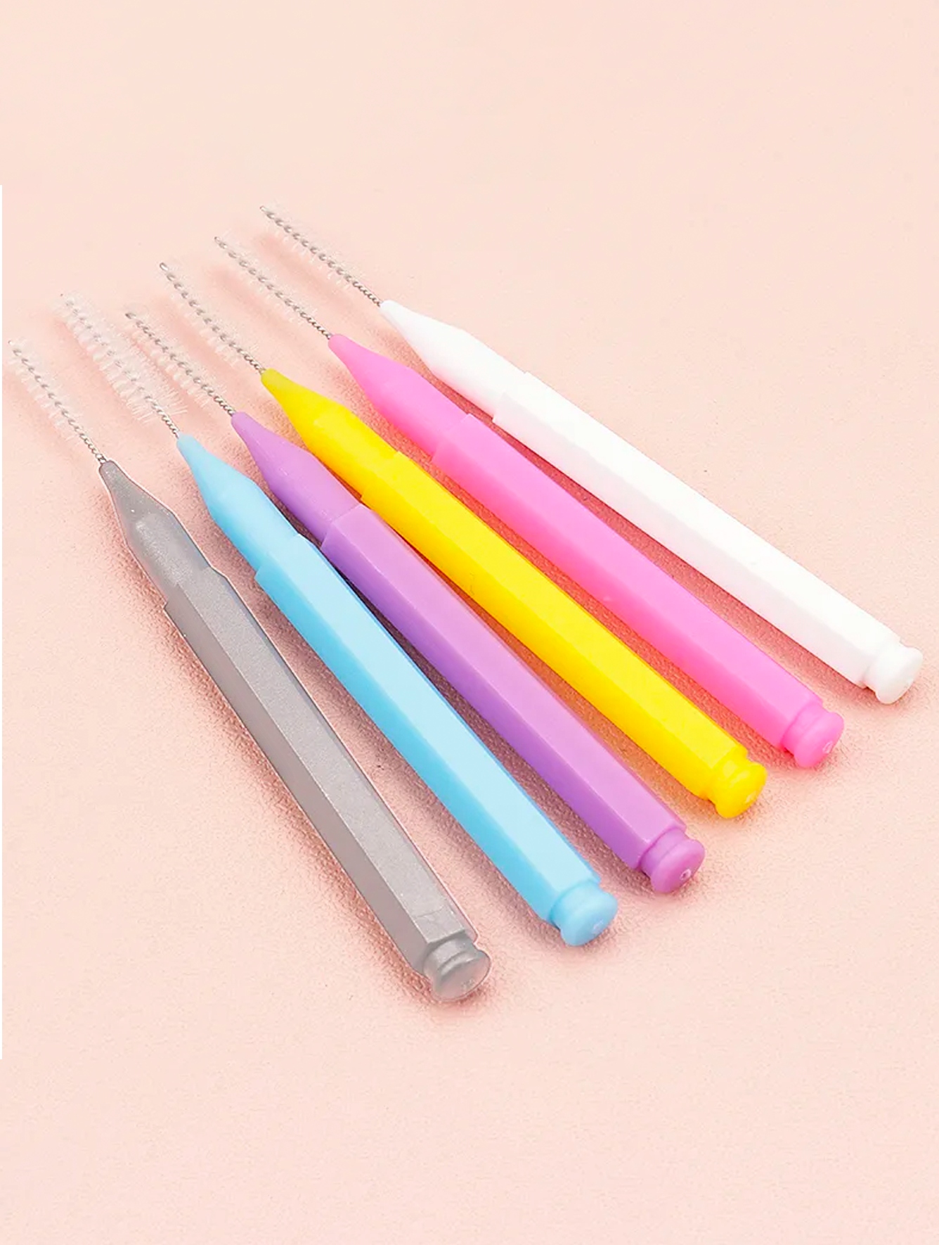 Кожна зубна щітка має нейлонову спіралеподібну щетину з малою та середньою жорсткістю. Це гарантує точне розчісування та полегшує видалення залишків клею та хни. Колір спіралі - білий, що дозволяє легко помітити залишки клею та хни.