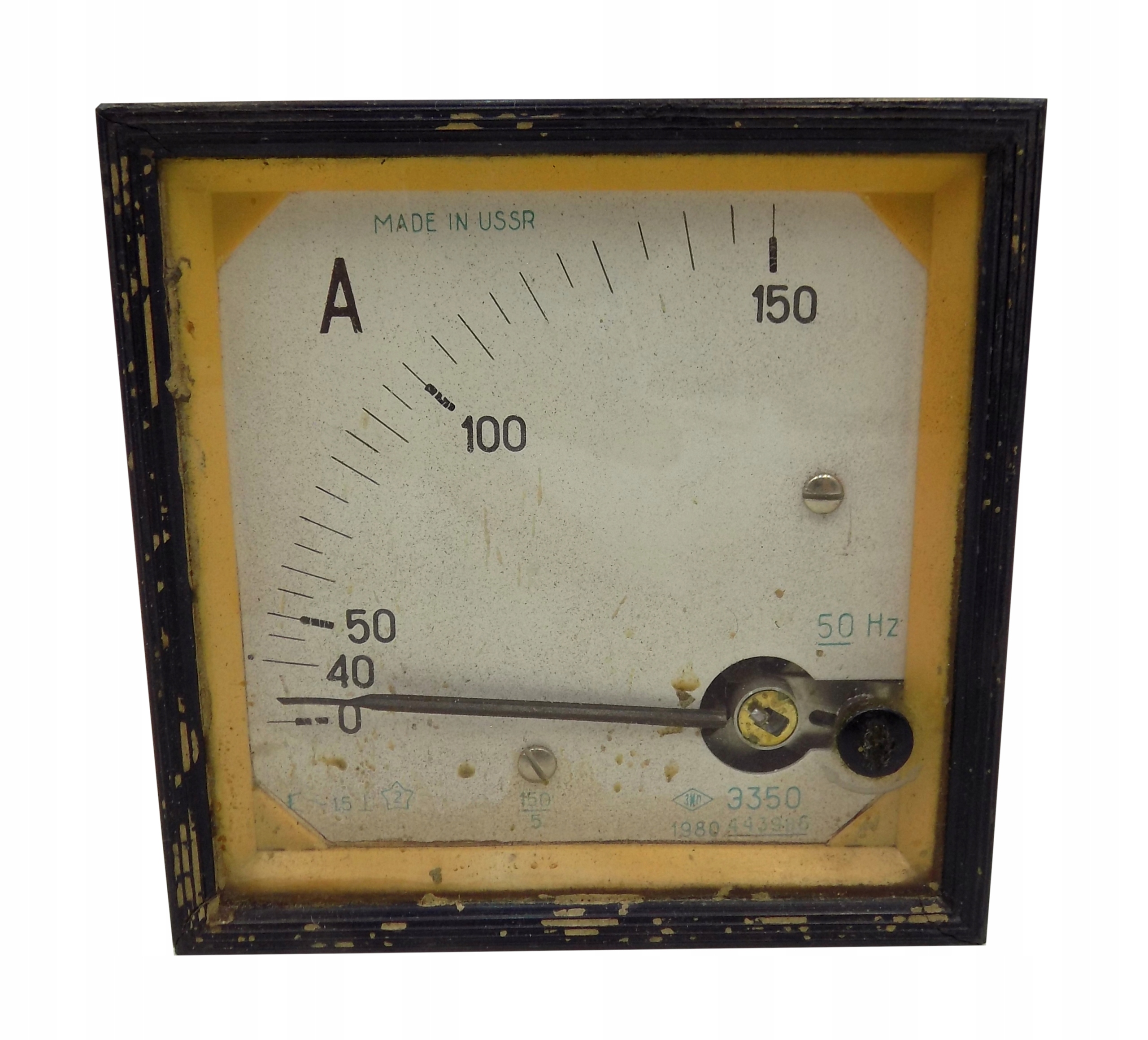 Панельний амперметр 150А виробництва СРСР часів Польської Народної Республіки. Розміри; висота 9,5 х 9,5 х 6 см. Товар був перерахований без перевірки.