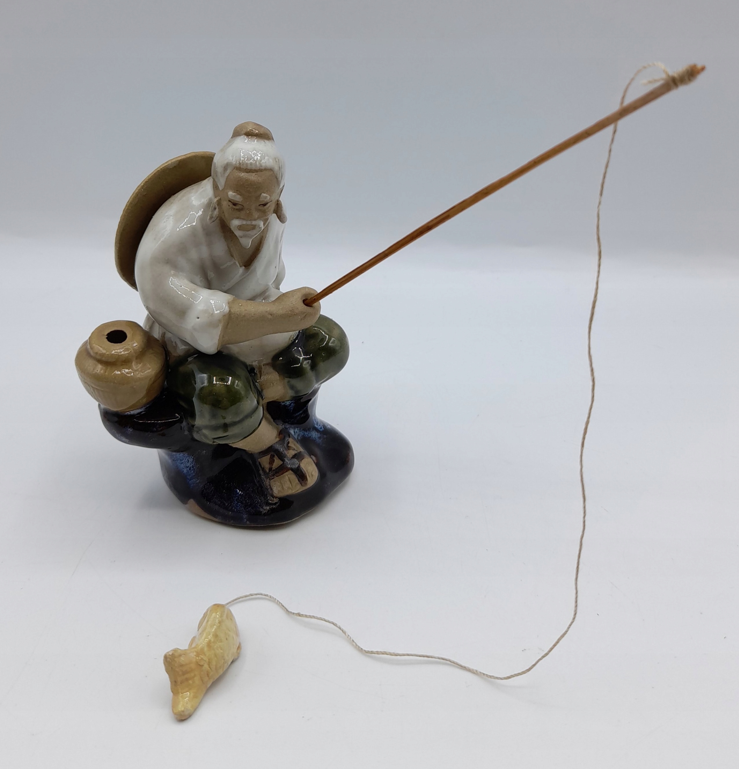 Shiwan FIGURKA kolekcjonerska STARA rybak WĘDKARZ