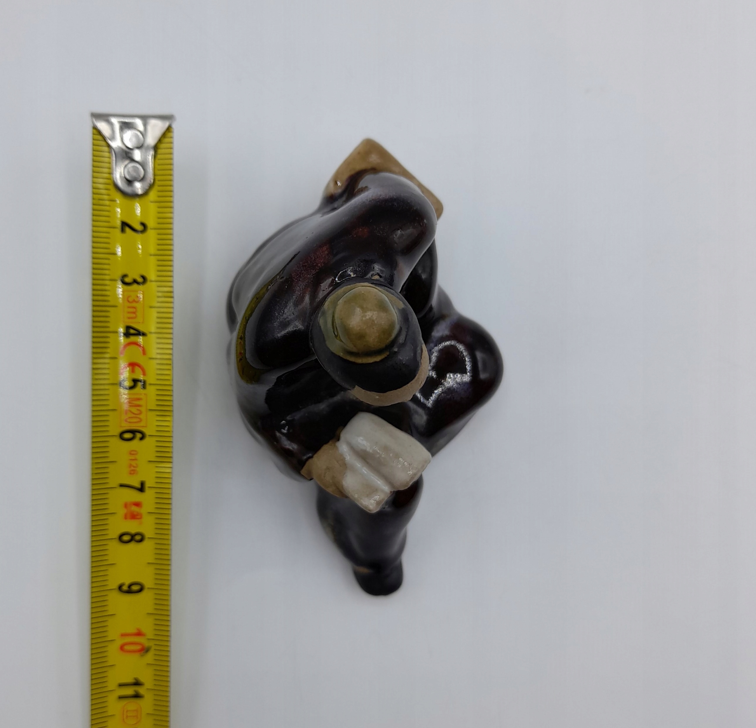 Виготовлений із глини/кераміки, частково глазурований. Розміри: 9см/7см/5,5см, вага 120 грам. У житті виглядає так само красиво, як і на фотографіях. Стан ІДЕАЛЬНИЙ - без дефектів. СТАРА, старовинна, колекційна статуетка.