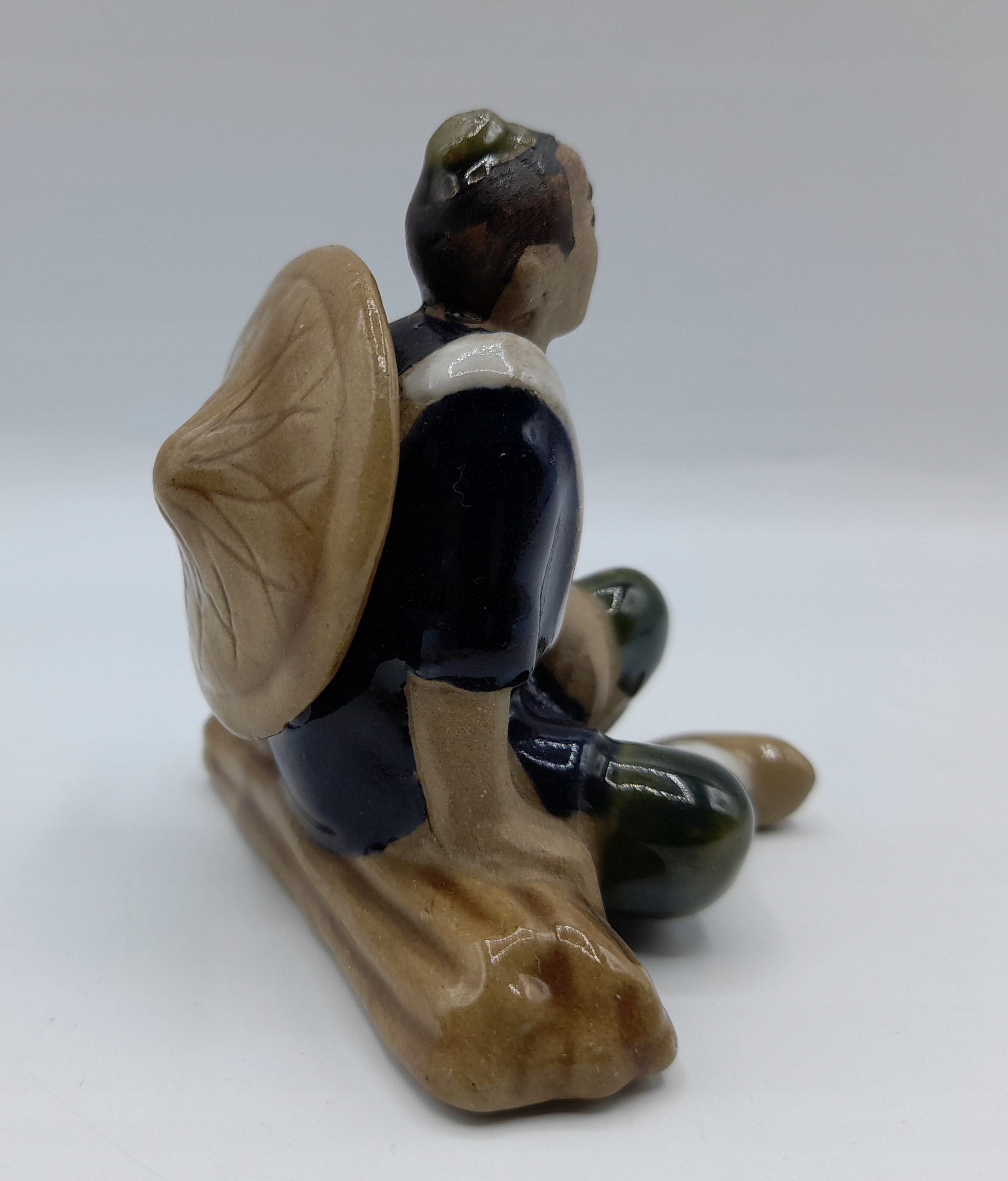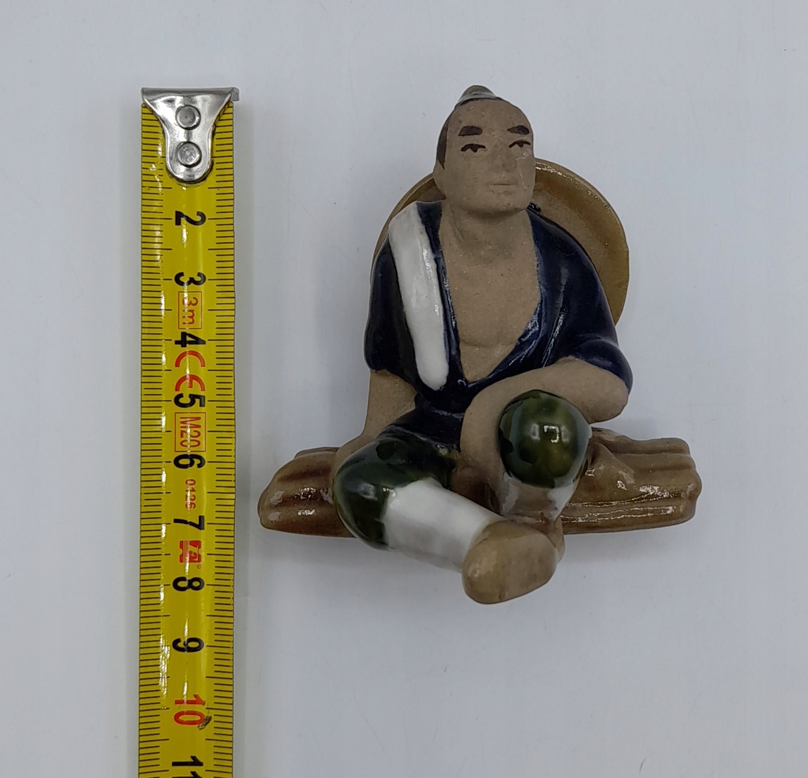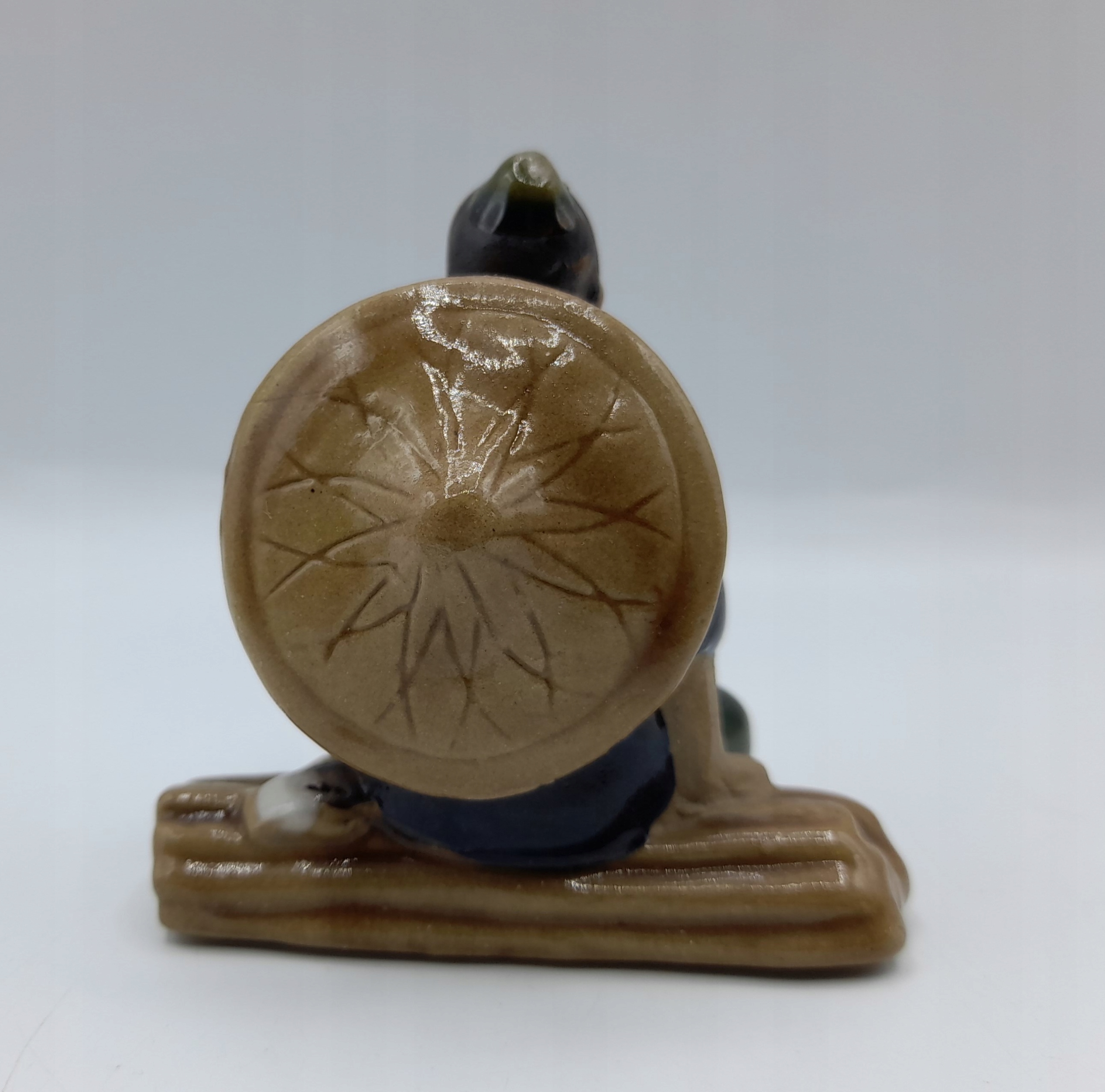 Фігурка, виготовлена з глини /ці фігурки широко відомі як глиняні статуетки або глиняні статуетки/ походять переважно з гончарних центрів у районах Шиван і Ваньцзян провінції Гуандун, Китай. Їх виготовлялиз кінця 19 століття до середини 20 століття.Усі статуетки були виготовлені вручну зі світлої, темної або червонуватої глини. Кожен лунь був розписаний вручну низькотемпературною свинцевою глазур’ю жовтою, блакитною або зеленою глазур’ю з випадковим використанням білого або коричневого кольору. Обличчя, руки та ноги залишилися без глазурі, щоб показати природний колір бруду. Деталі дивовижні, особливо навколо обличчя, яке завжди дуже реалістичне. Завдяки тому, що всі вони зроблені вручну, немає двох однакових фігурок!!!