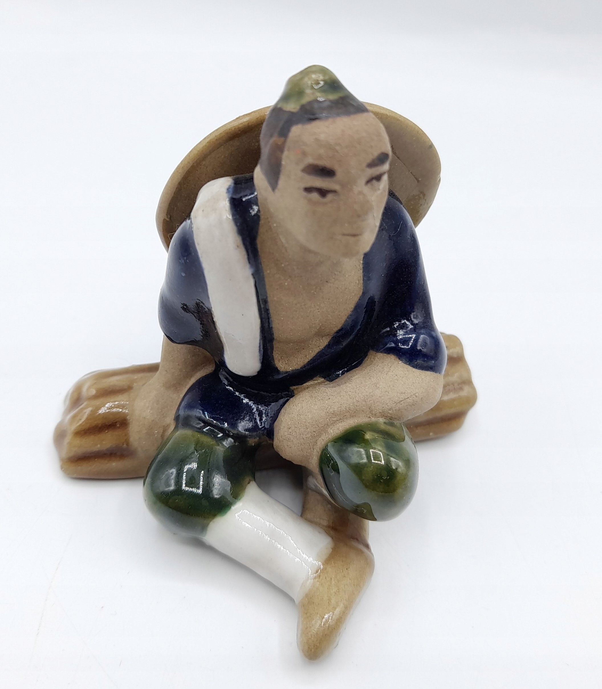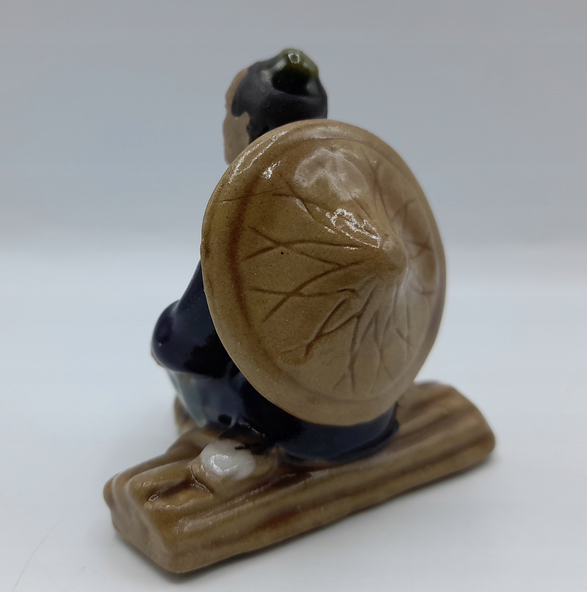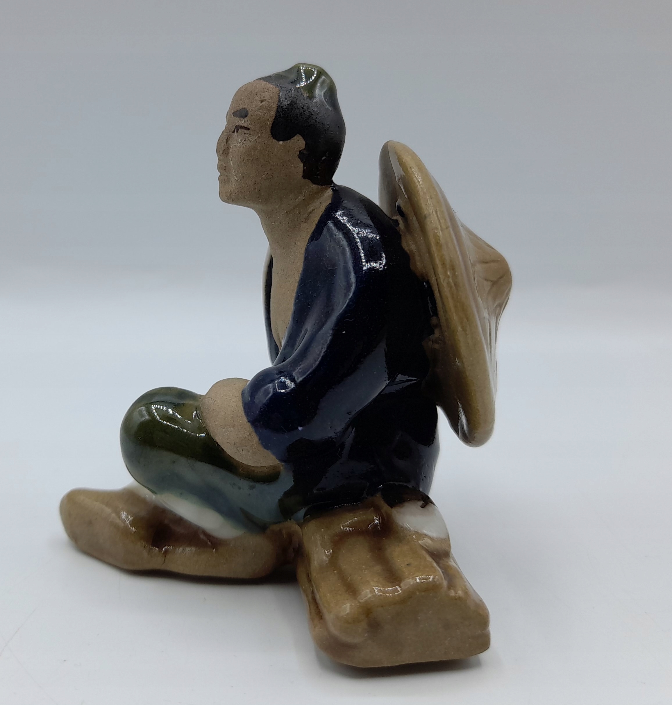 Фігурка, виготовлена з глини /ці фігурки широко відомі як глиняні статуетки або глиняні статуетки/ походять переважно з гончарних центрів у районах Шиван і Ваньцзян провінції Гуандун, Китай. Їх виготовлялиз кінця 19 століття до середини 20 століття.Усі статуетки були виготовлені вручну зі світлої, темної або червонуватої глини. Кожен лунь був розписаний вручну низькотемпературною свинцевою глазур’ю жовтою, блакитною або зеленою глазур’ю з випадковим використанням білого або коричневого кольору. Обличчя, руки та ноги залишилися без глазурі, щоб показати природний колір бруду. Деталі дивовижні, особливо навколо обличчя, яке завжди дуже реалістичне. Завдяки тому, що всі вони зроблені вручну, немає двох однакових фігурок!!!