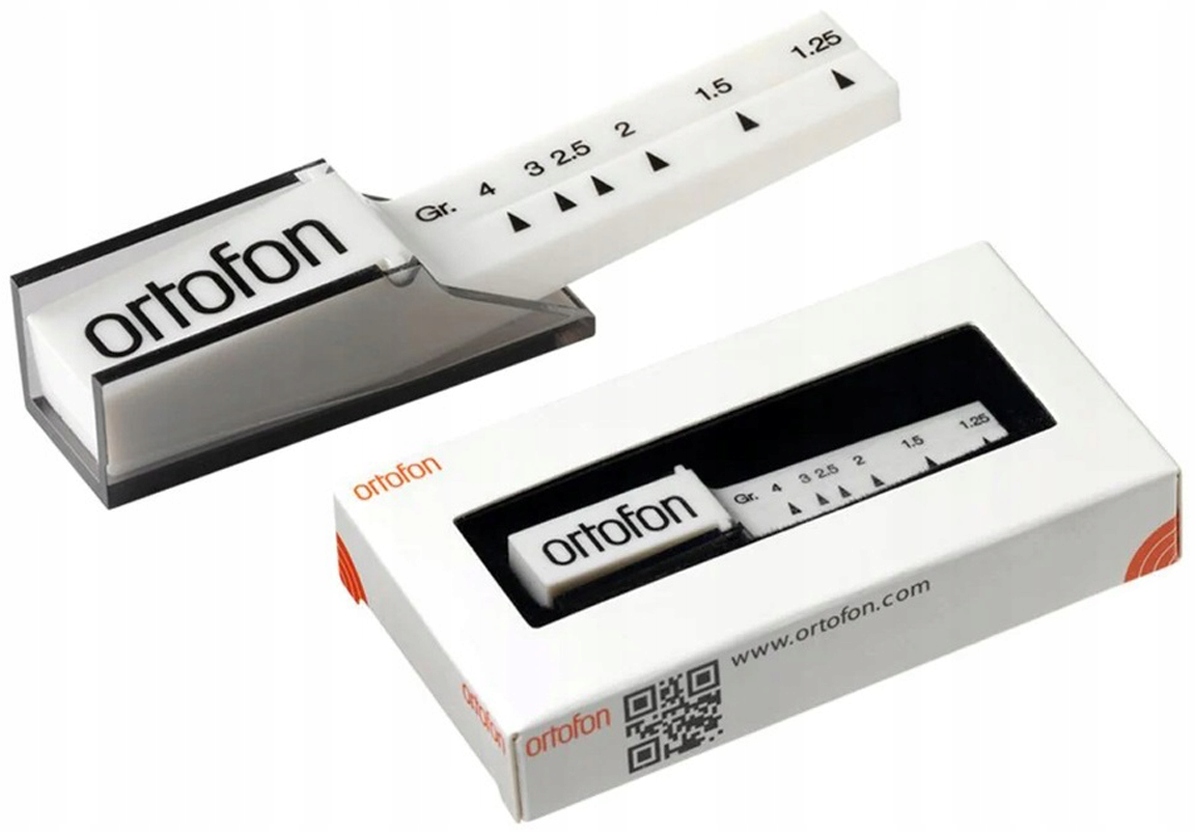Перевірте рекомендовані виробниками налаштування тиску стилуса. Інструмент для вимірювання тиску Ortofon — це невелика пластикова поворотна вага, яка точно вимірює тиск від 1,25 г до 4 г.