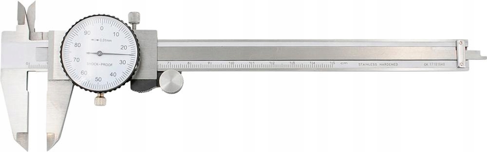 Шкала годинника, Формат Впровадження: Виготовлена з нержавіючої сталі, загартовані, компоненти, розміщені хромом Метта, розказані, дрібно шліфовані вимірювальні поверхні, з роликом для точного регулювання, встановлення та прямокутного глибини. Штучна шкіра. Застосування: для внутрішніх, зовнішніх, глибинних та кроків вимірювань.