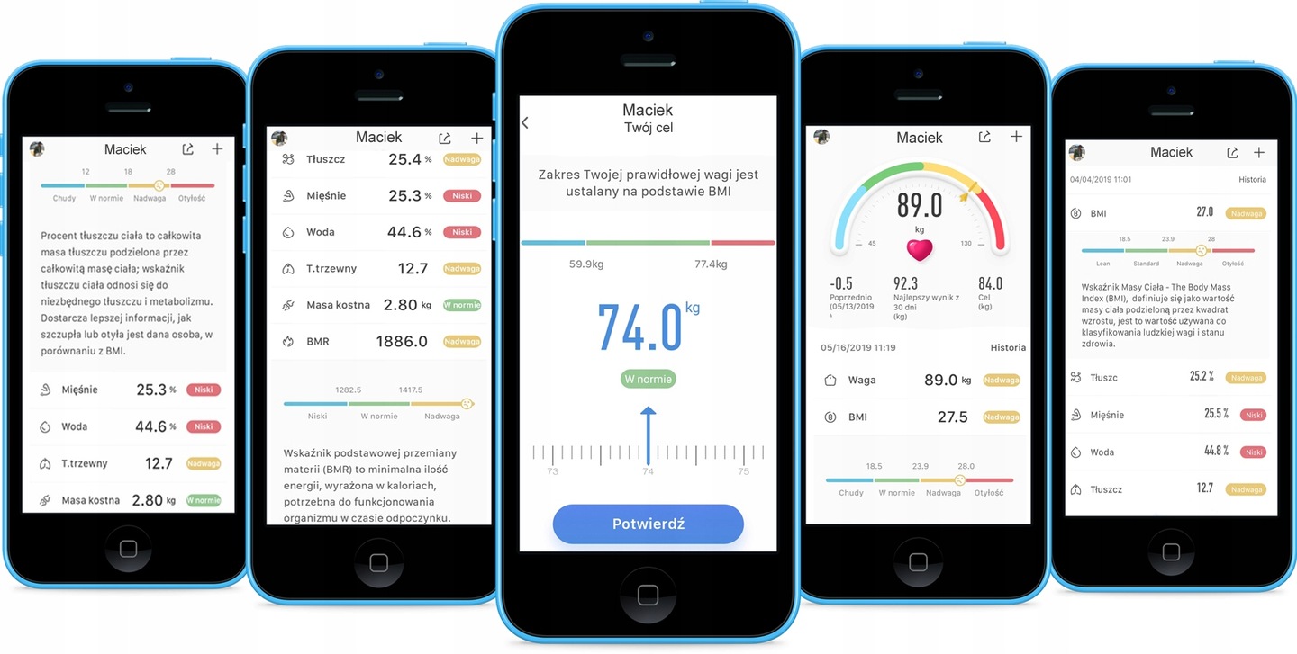 Сучасна інтелектуальна електронна шкала, оснащена дисплеєм, яка показує нам не тільки масу тіла, але й інші показники, включаючи вміст води, жирної або м’язової тканини в організмі. Найсучасніші моделі електронних вагонів також мають внутрішню пам'ять, яка пам’ятає наші вимірювання, аналізи та порівнює їх. Завдяки функції Bluetooth ви можете надсилати дані на інші пристрої, наприклад смартфон. Ідеально підходить для всіх. чудово підходить для фізичних навантажень для перевірки вашого прогресу.