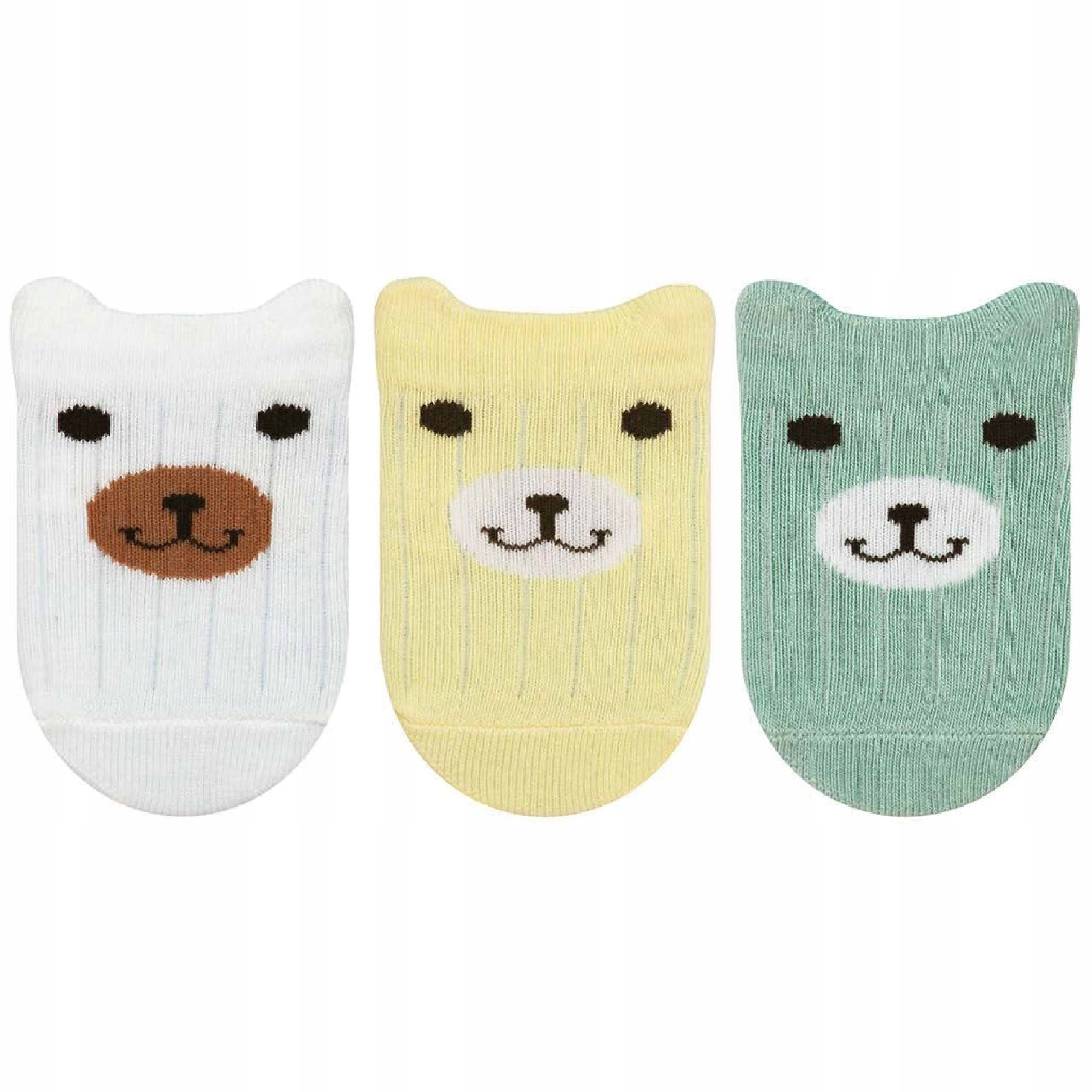 Чудові шкарпетки з мотивом плюшевого ведмедика жовтого, білого та зеленого кольорів.