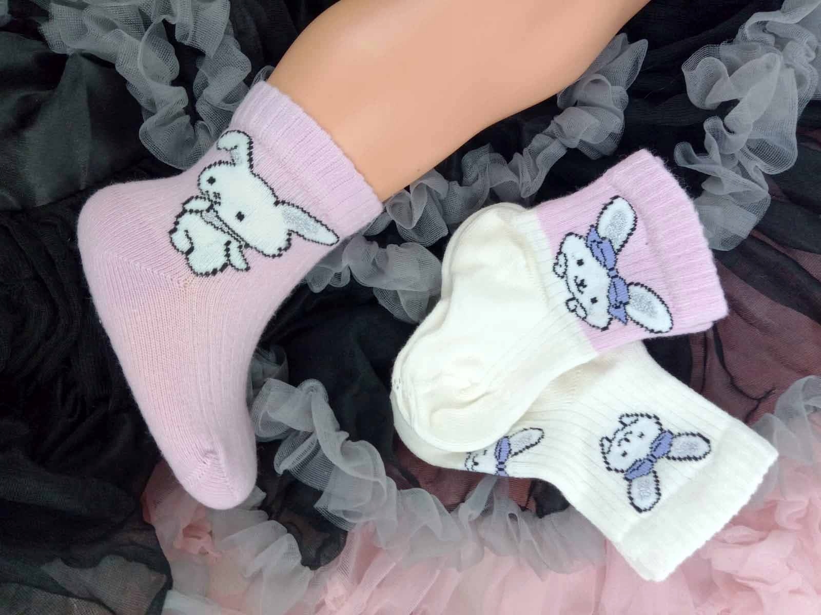 Чудовий набір шкарпеток з милими зайчиками. Гарний бузковий колір, шкарпетки в рубчик.