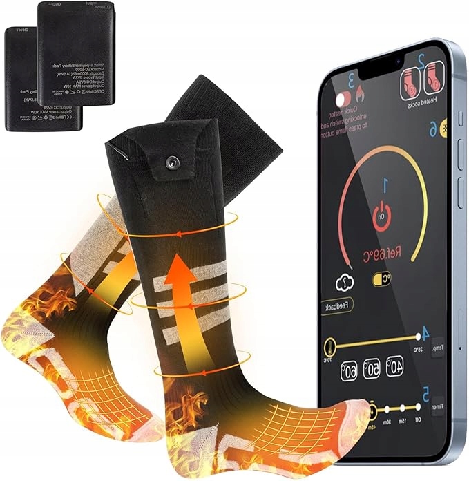 - Ці новітні шкарпетки з підігрівом, які підключаються через USB, дозволяють керувати ними за допомогою програми для смартфона. Ця програма дозволяє регулювати температуру, встановлювати таймери, увімкнути або вимкнути підігрів шкарпеток і навіть керувати кожною шкарпеткою окремо, і все це кількома дотиками. Зберігати ноги в теплі ще ніколи не було так просто (потрібна активація Bluetooth). Акумулятор 5000mAh забезпечує до 6-8 годин автономної роботи.
