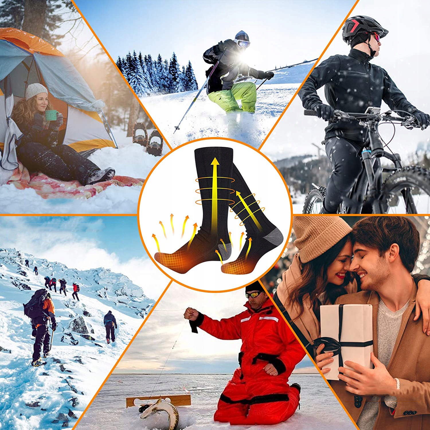 - 【Універсальний розмір】 Наші шкарпетки з підігрівом мають високу еластичність, вільний розмір, підходить для більшості людей. Чудовий зимовий подарунок собі, родині та друзям. Можна прати в пральній машині, перед пранням помістіть шкарпетки в мішок для білизни, який входить у комплект, щоб запобігти розриву зарядного кабелю.