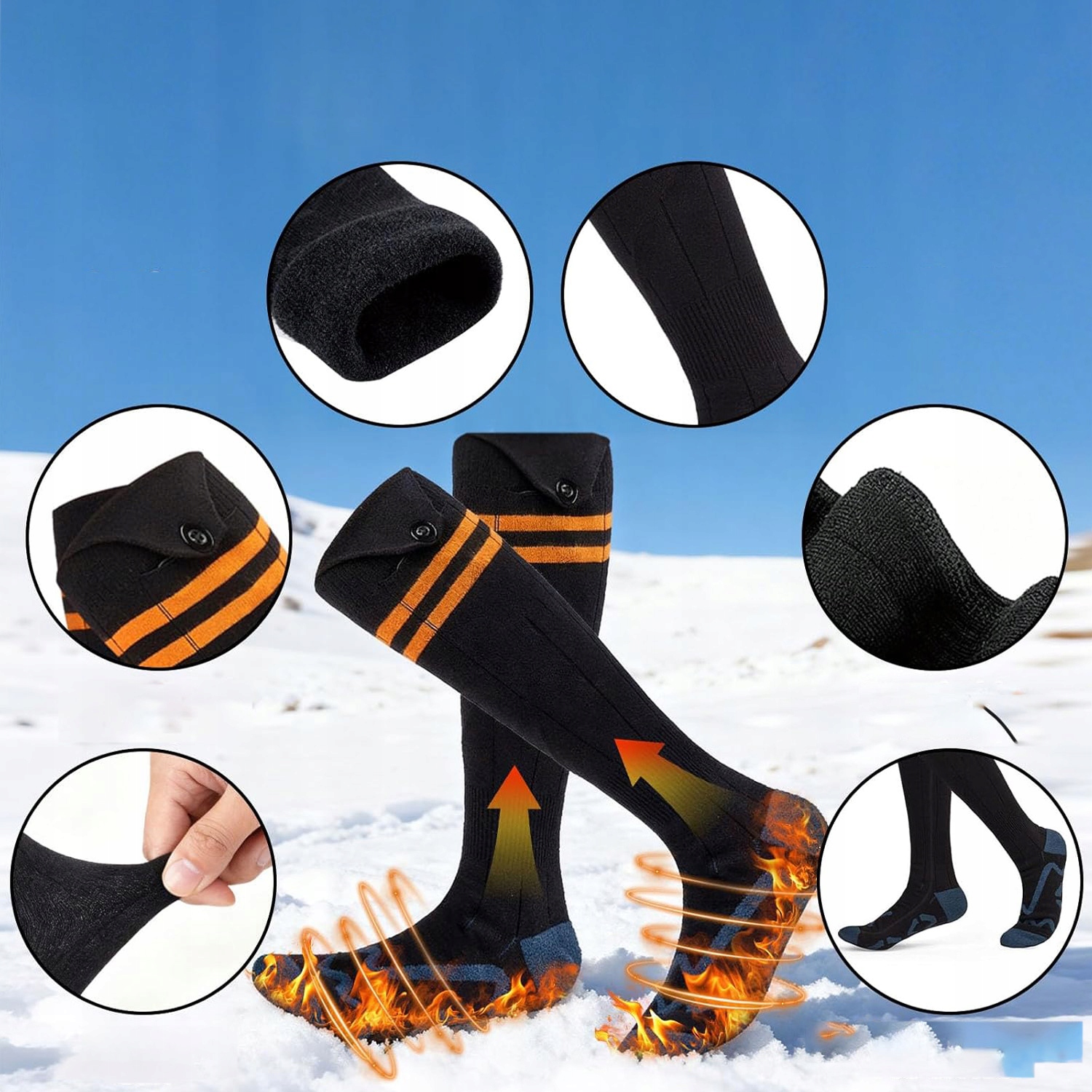 Нагрівальний елемент шкарпеток із підігрівом виготовлено з ізоляційного матеріалу та пройшов ретельні випробування, щоб безпечно зігріти та захистити ваші ноги в холодні зимові дні.
