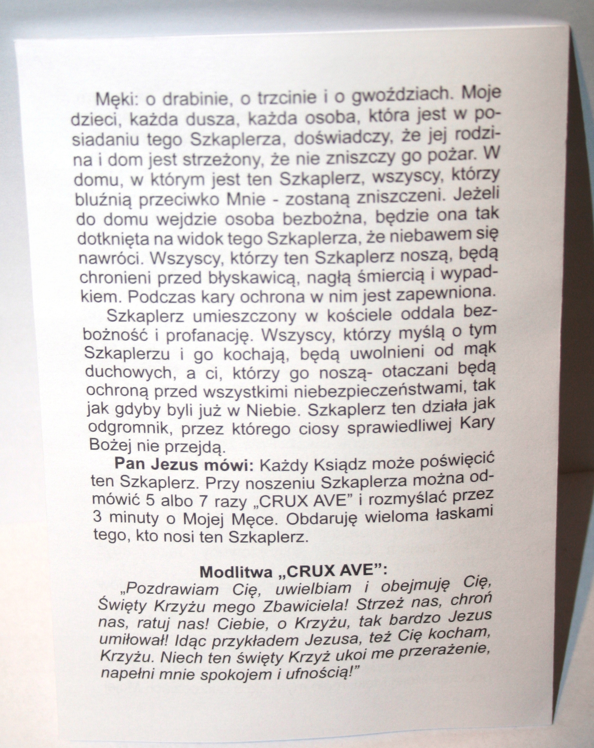 Шкаплер Страстей Господніх, благословення та захист