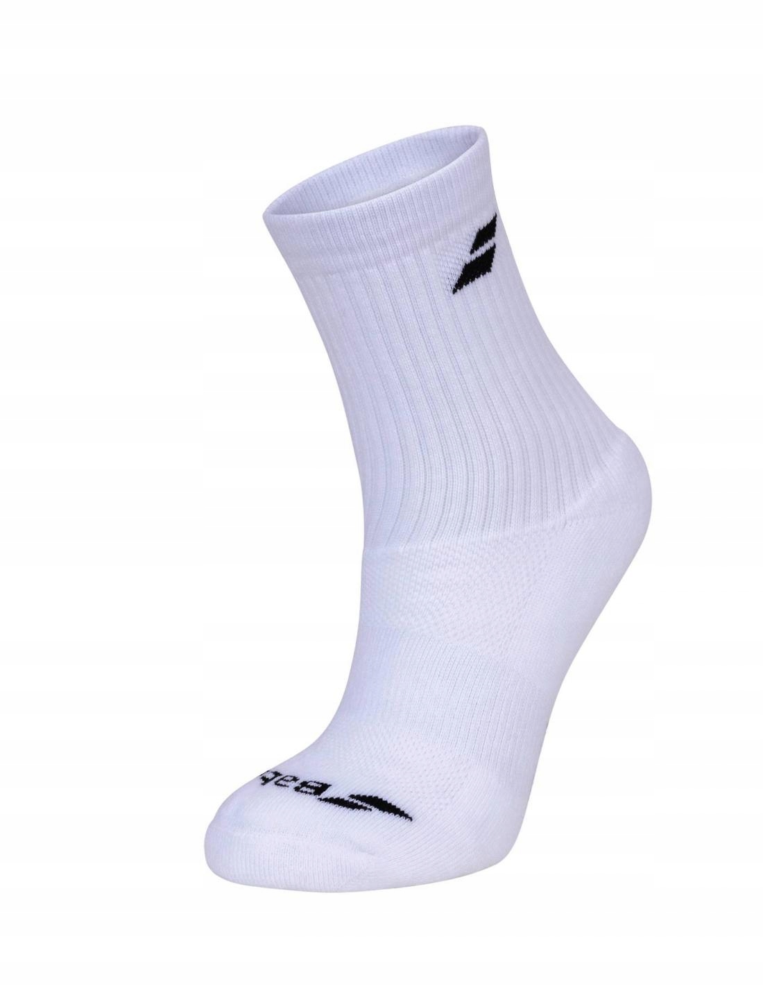 Babolat 3 Pairs Pack Socks - універсальні спортивні шкарпетки для занять і тренувань на кортах (теніс, сквош, бадмінтон), в спортзалі або в залі (гандбол, волейбол і т.д.) і щодня. Щільні, зручні та приємні в носінні шкарпетки з м'якої тканини.