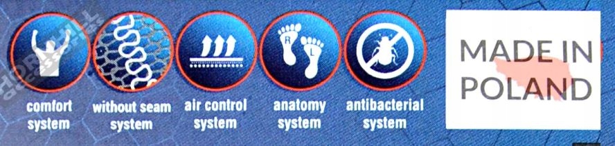 3 ) СИСТЕМА КОНТРОЛЮ ПОВІТРЯ - зона дихання на основі сітчастої конструкції (середня, бічна частина носка) - покращує циркуляцію повітря, полегшує видалення вологи на зовнішню сторону носка