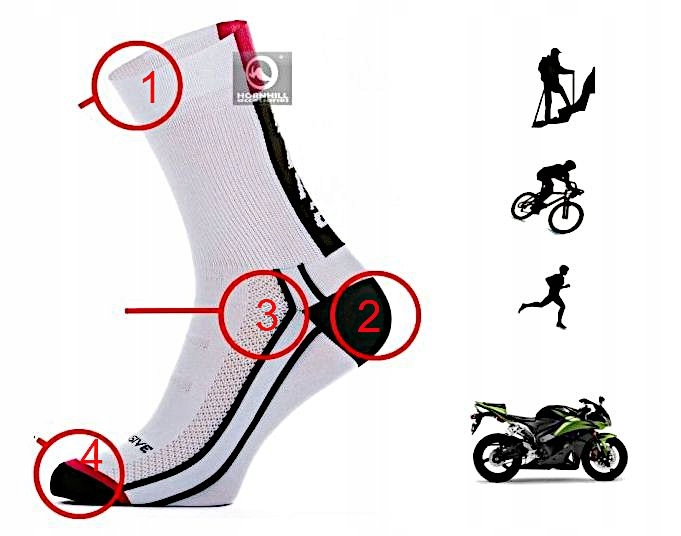 1) СИСТЕМА КОМФОРТУ - у верхній частині шкарпеток розташована манжета без тиску, що забезпечує комфорт використання.