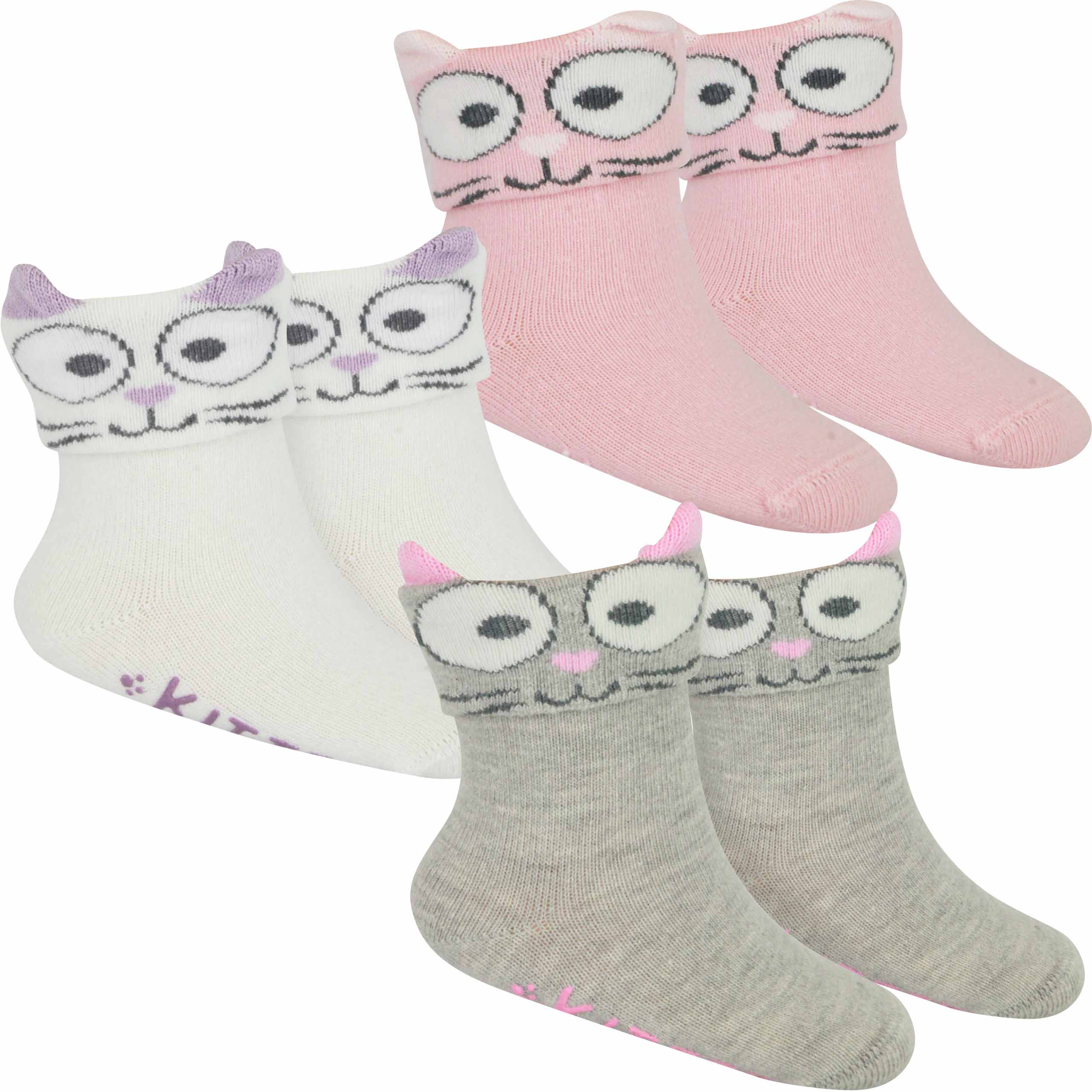 Чудові шкарпетки з мотивом кошеня сірого, білого та рожевого кольорів. Кошенята мають привабливі 3D вуха.