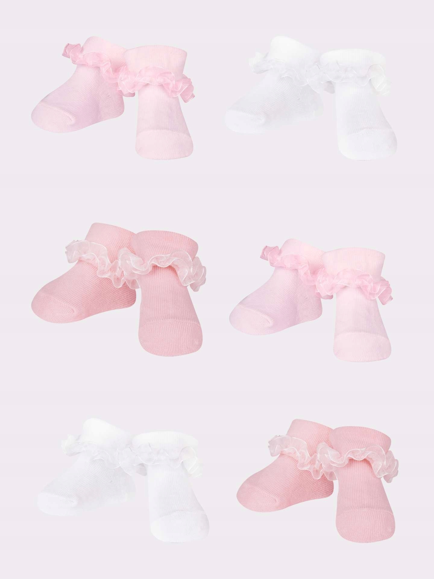 Шкарпетки для дівчат доступні в практичній упаковці з шести штук. У пастельних кольорах: білий і відтінки рожевого, що підходить для багатьох стилів і багатьох випадків. Вони ідеально підійдуть для будь-якого свята чи фотосесії.