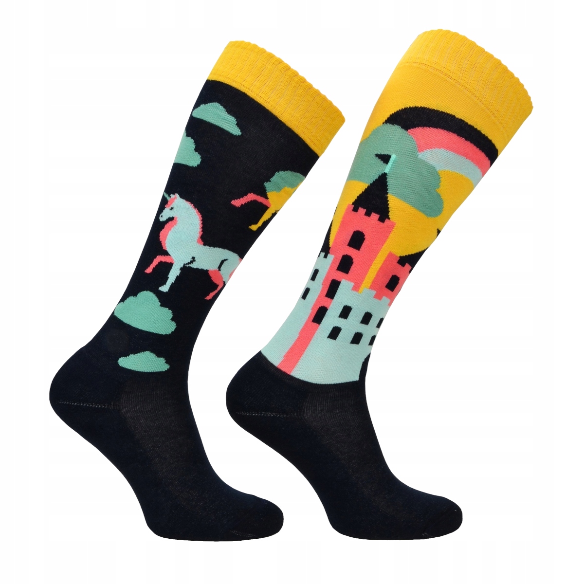Зручні шкарпетки для верхової їзди з веселими візерунками - єдинороги на одній шкарпетці та чарівний замок на іншій.