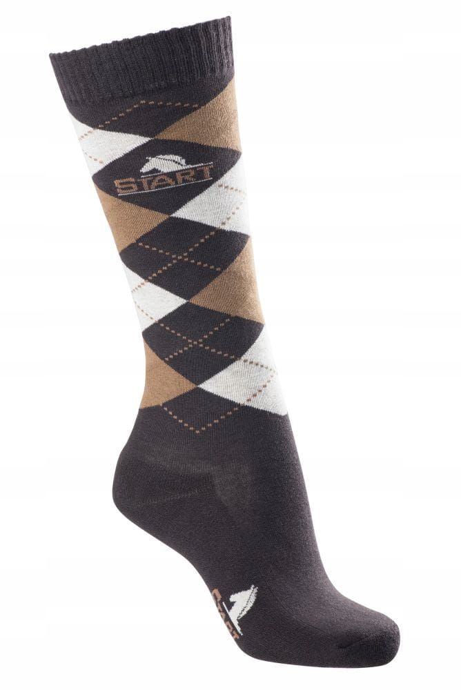 Шкарпетки для верхової їзди з класичним ромбовим малюнком. Мають підсилення на стопі, тому шкарпетки не зношуються. Еластична манжета, що не тисне, у верхній частині утримує шкарпетки на місці. Великий вибір кольорів.
