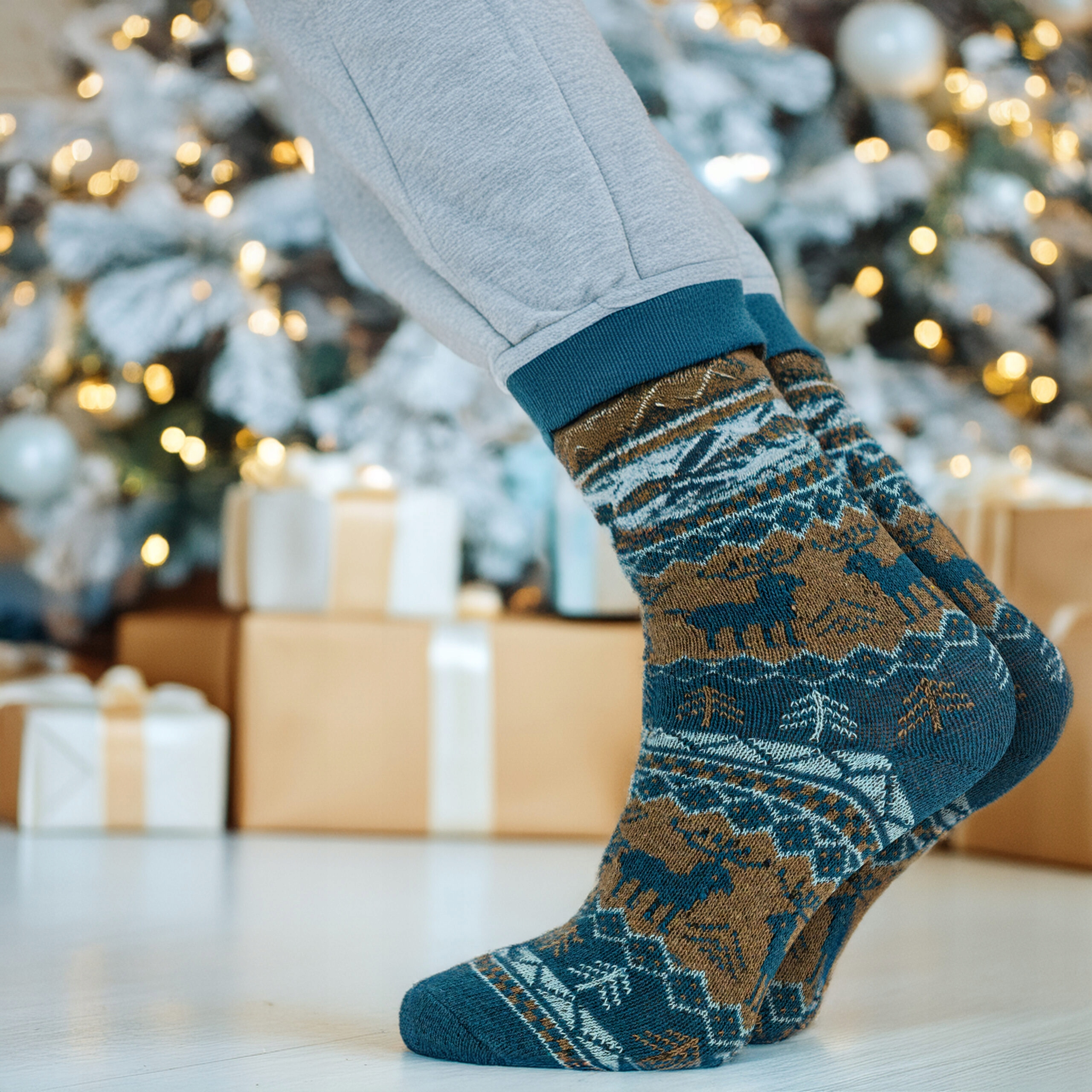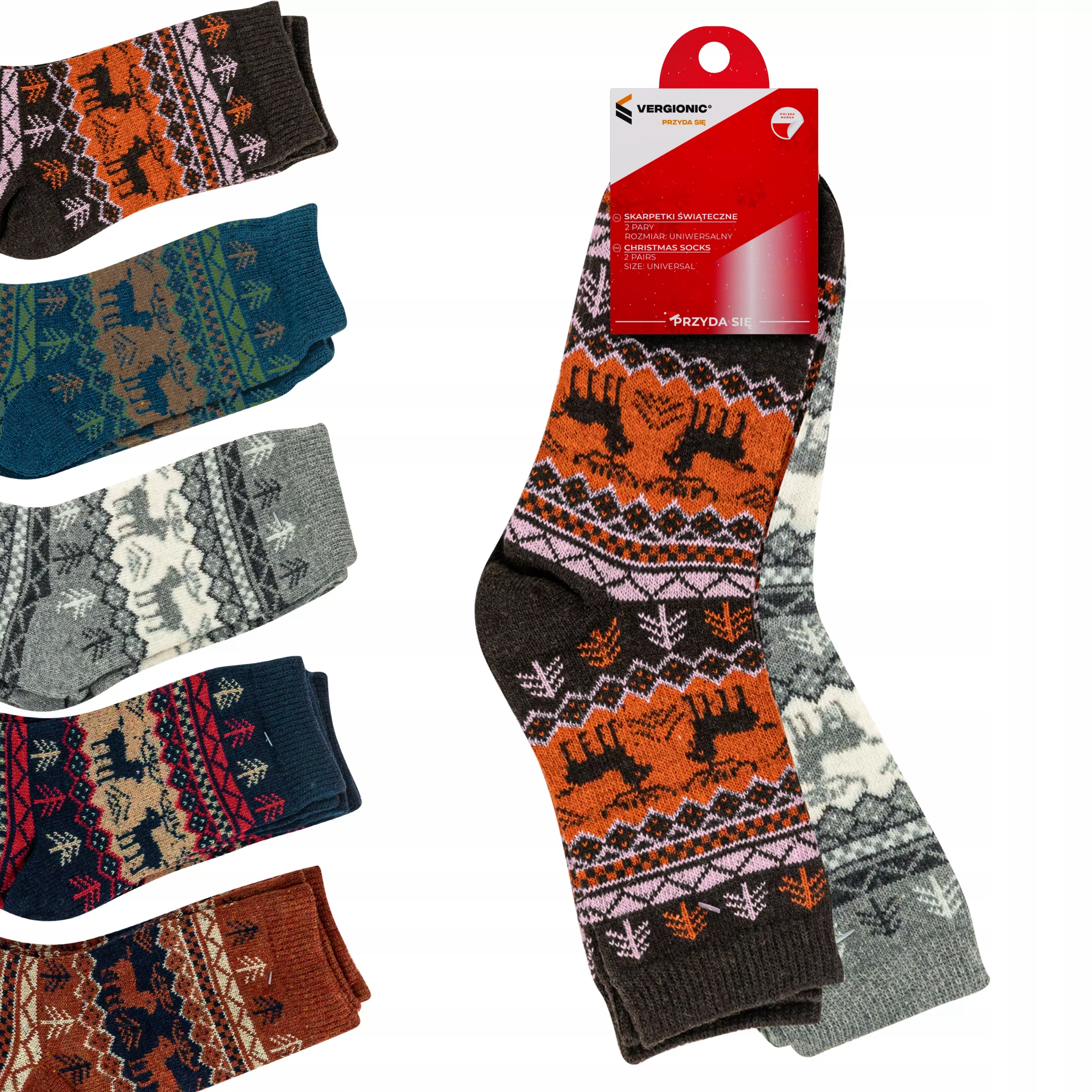 Шкарпетки доступні в кількох різдвяних кольорах - прикрашені оленями, різдвяними ялинками та візерунками, що нагадують ацтекські візерунки. В упаковці 2 пари в одному кольорі. Ідеально підходить для щоденного використання та як різдвяний подарунок для близьких. Розмір шкарпеток дуже універсальний і підійде як жінкам, так і чоловікам.
