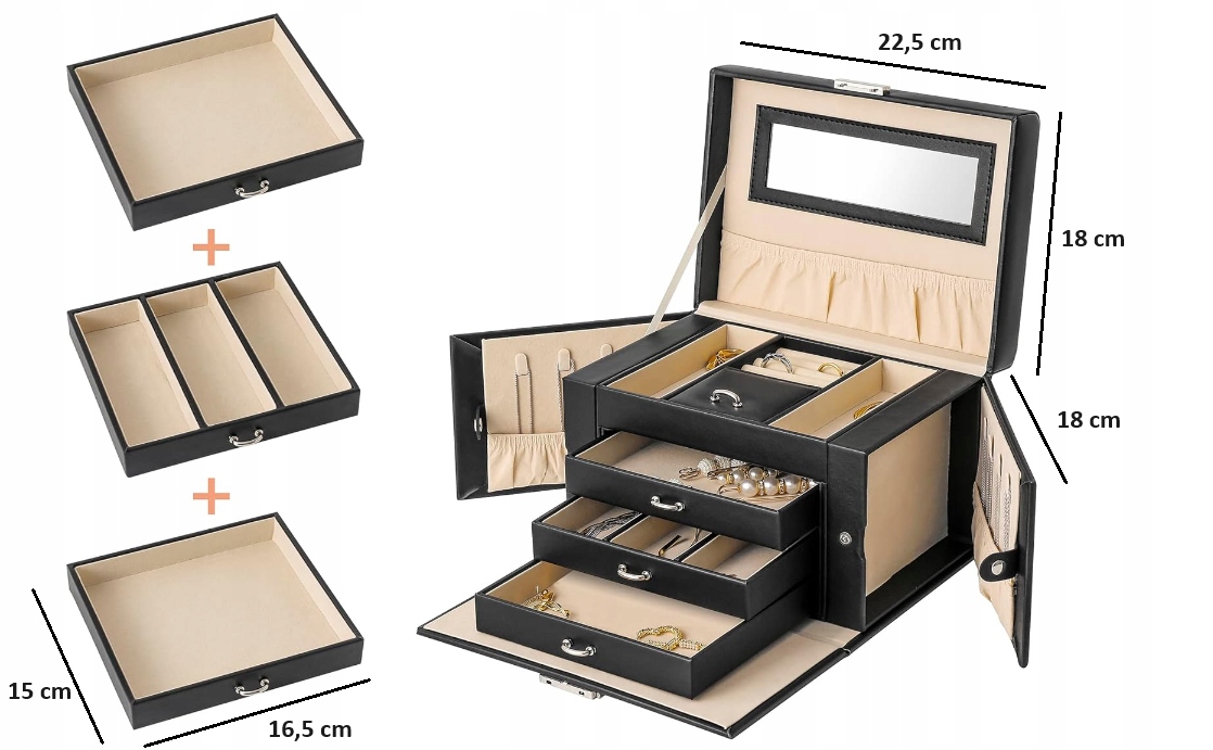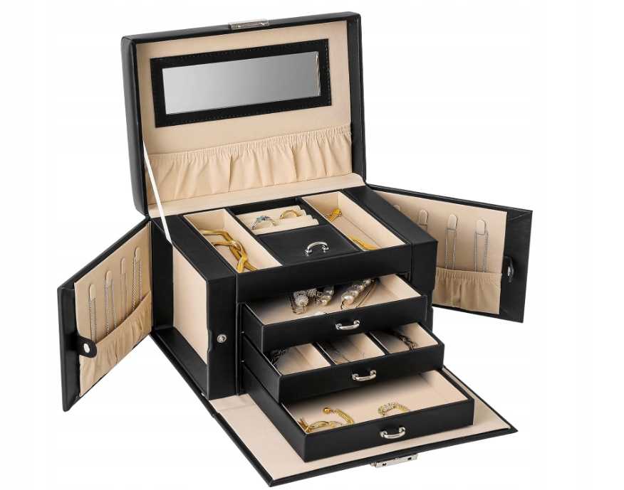 - Шкатулка для коштовностей: на верхньому шарі є 4 рухливі подушки. Ви можете не лише зручно та безпечно зберігати свої прикраси, а й годинник.