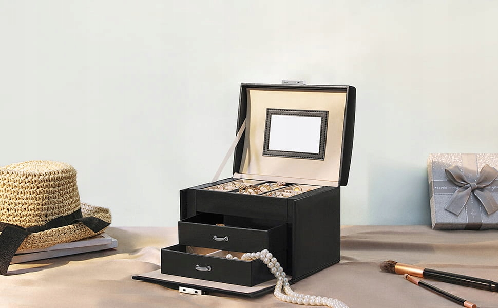 Дзеркало в комплекті: вбудоване дзеркало в кришці дозволяє швидко перевірити свої коштовності або макіяж , економія часу під час ранкових приготувань.