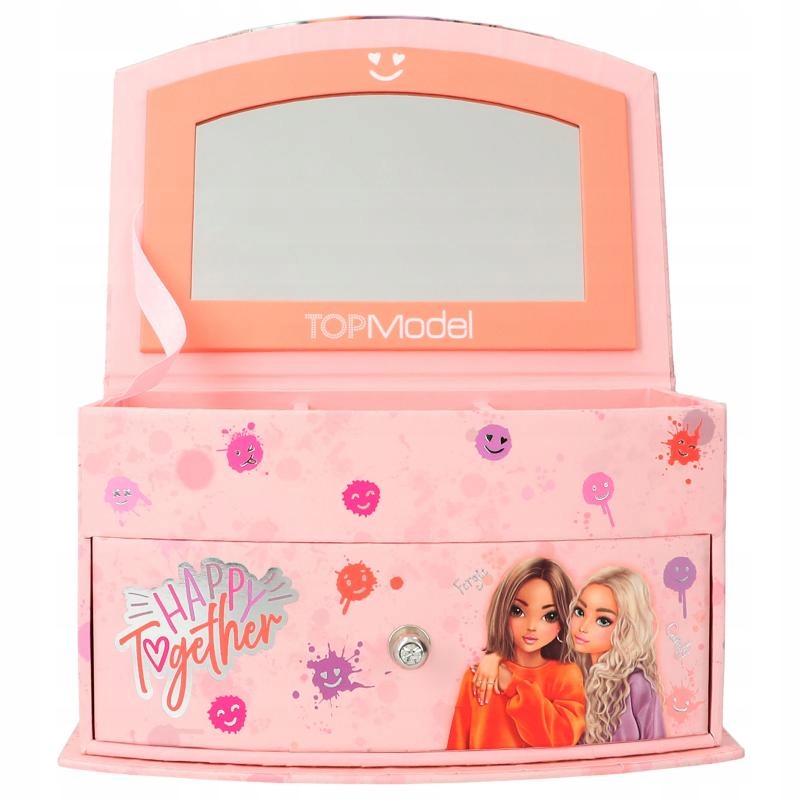 Ця маленька скринька для прикрас від TOPModel просто порадує вас: у веселих кольорах, із веселими мордочками та чудовими мотивами моделей.
