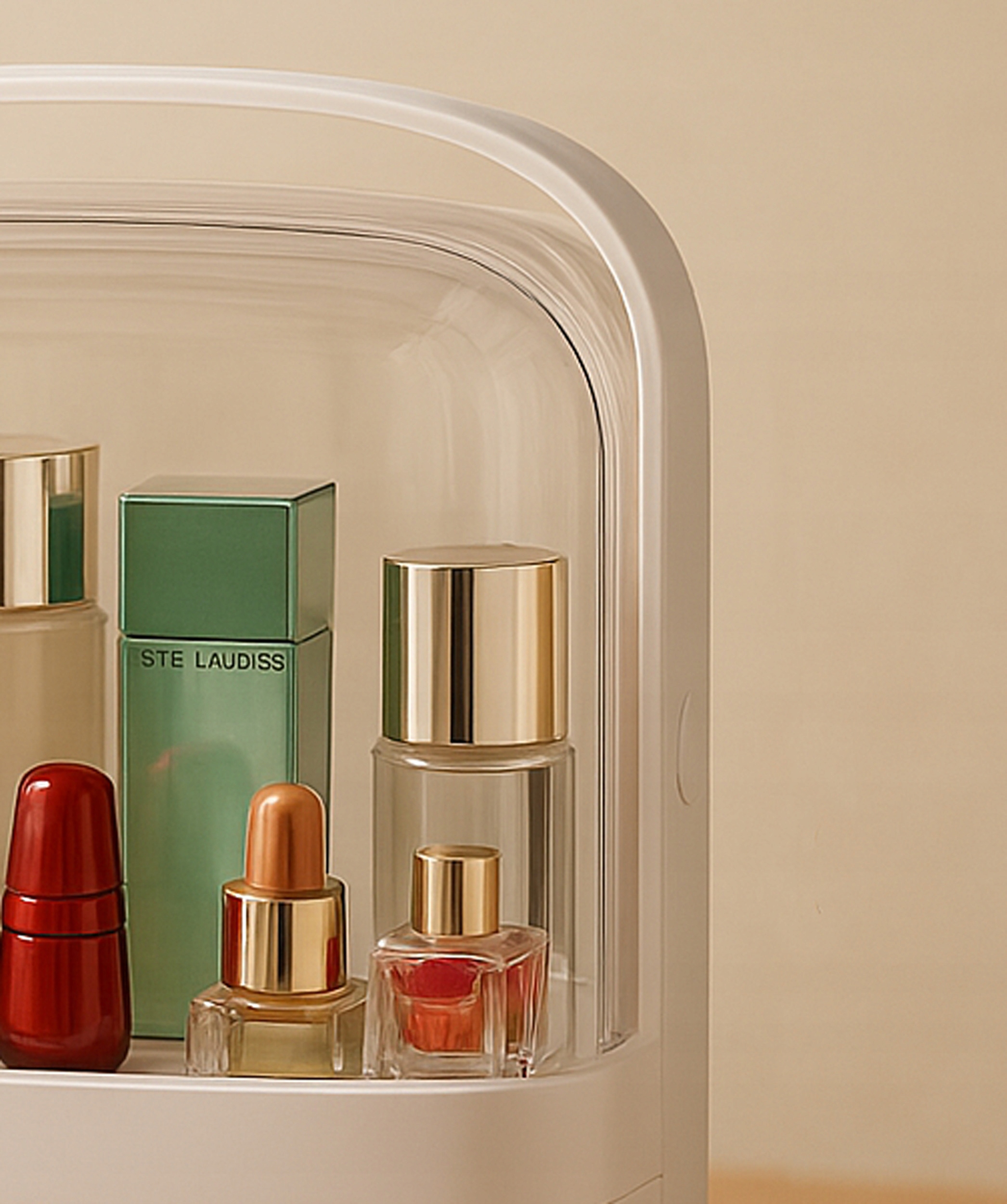 Ви намагаєтесь упорядкувати свою колекцію косметики? Не шукайте далі – органайзер для косметики Nela! Наш кришталевий естетичний дизайн робить ваші косметичні засоби легко помітними та доступними. Завдяки відділенням ідеального розміру для будь-якої косметики ви зможете швидко й легко знайти все, що вам потрібно. Незалежно від того, чи це для щоденного використання, чи ви використовуєте його час від часу. Попрощайтеся з брудними стільницями та неохайними ящиками.