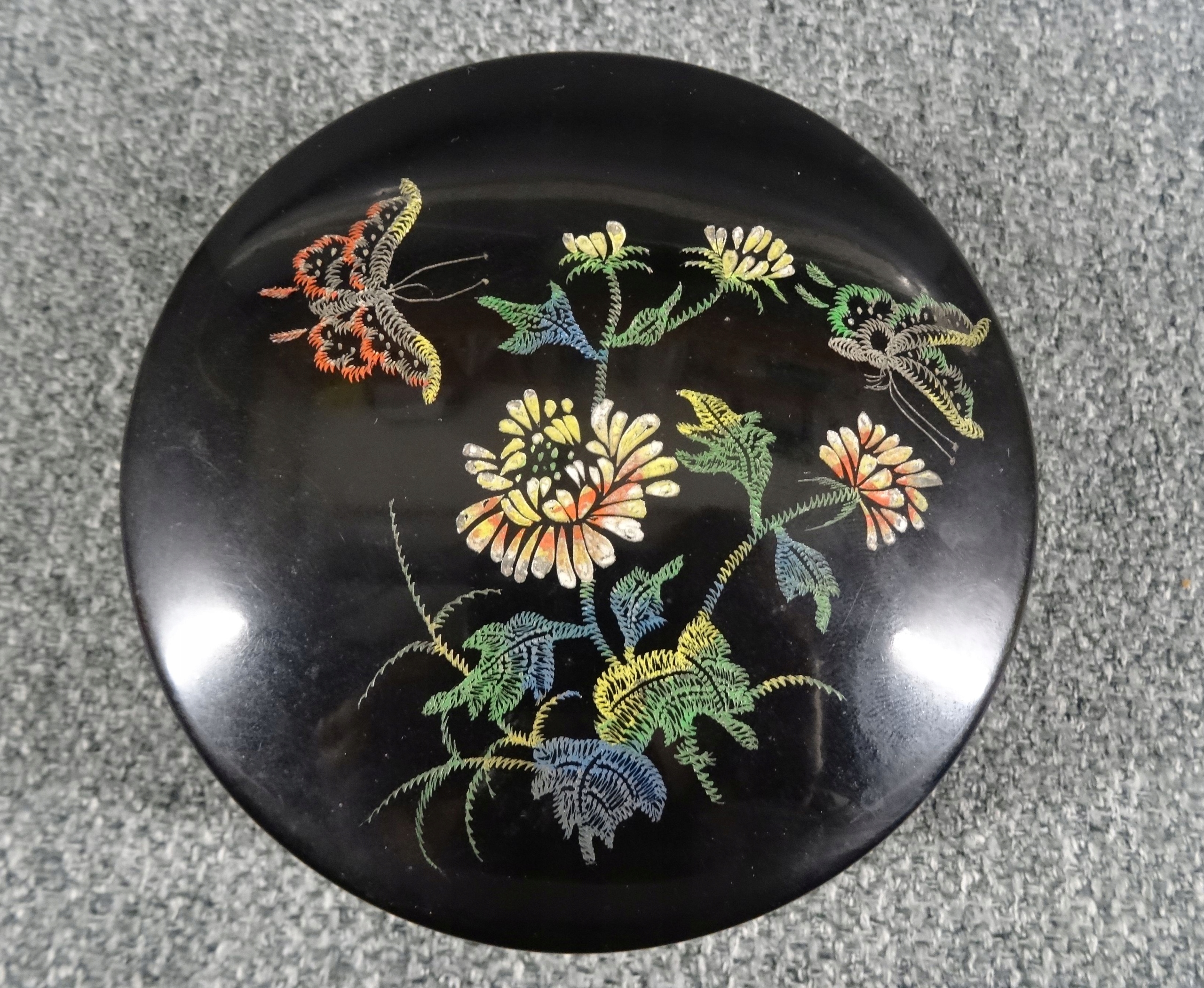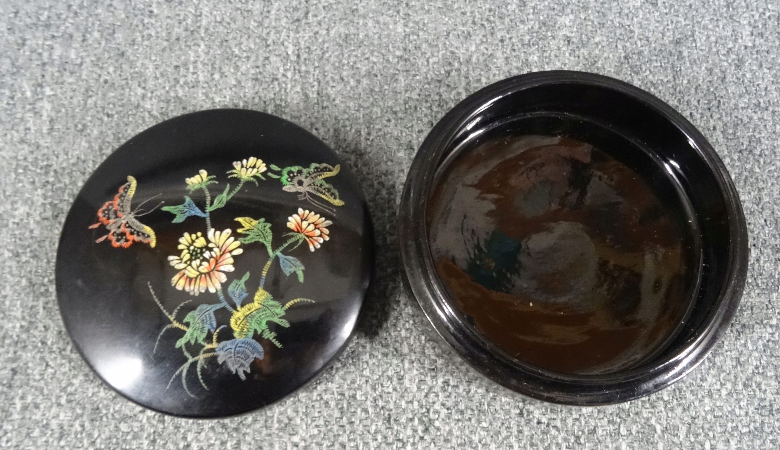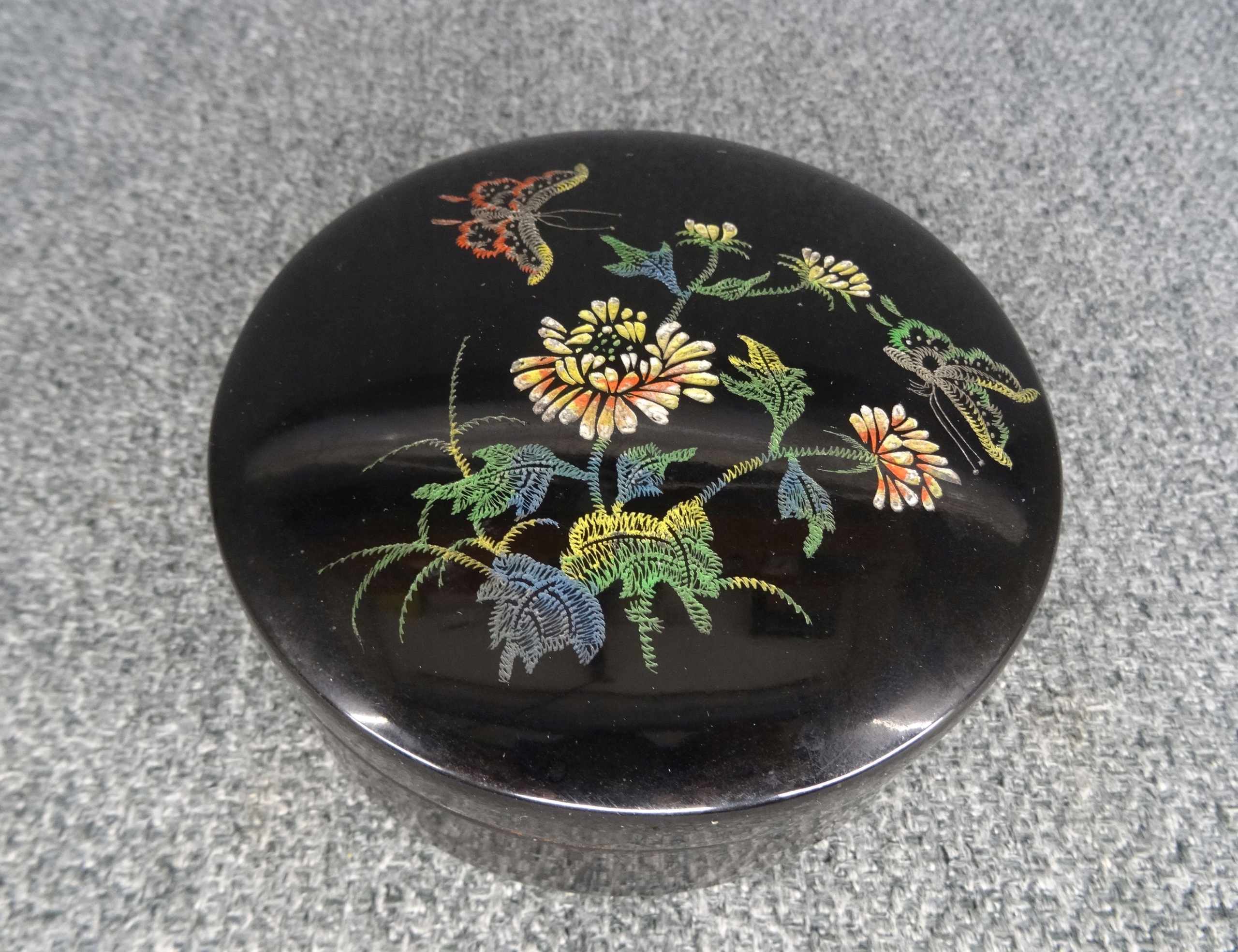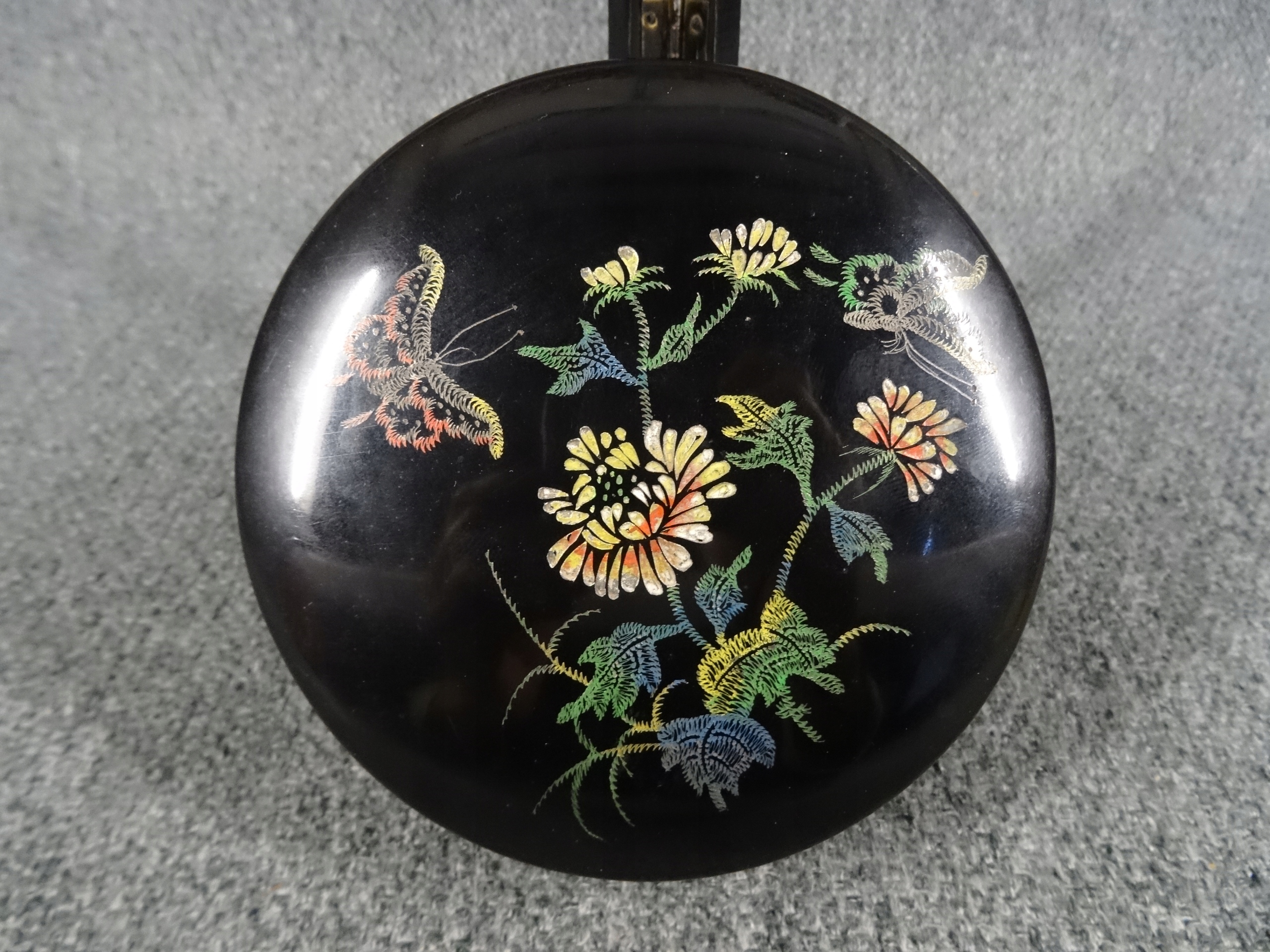 Кухол, шкатулка. Коробка покрита лаком. На кришці вигравірувано квітковий візерунок і два метелики. Гравюри намальовані яскравими кольорами.