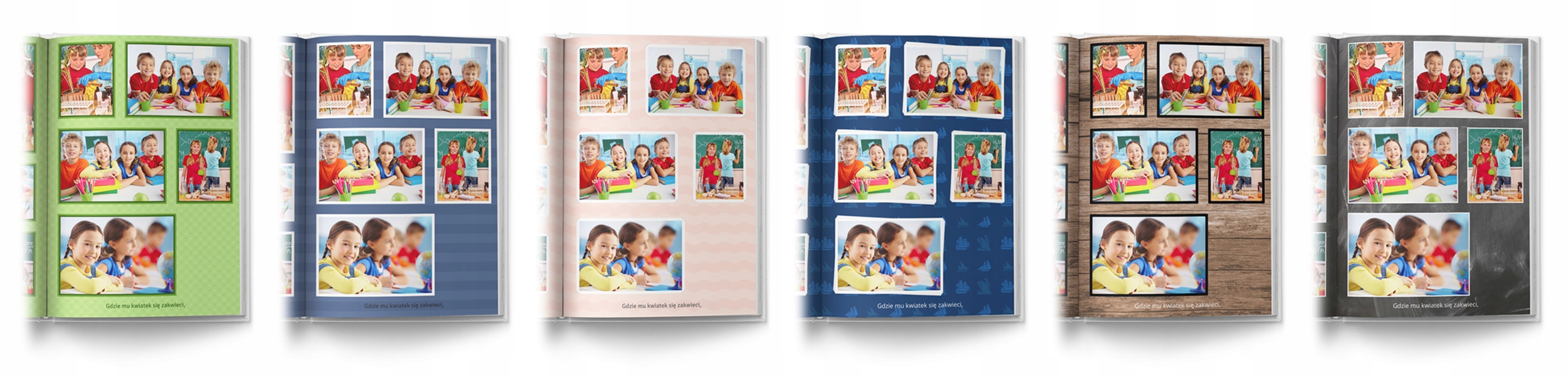 Коли ви впорядкуєте фотографії, введете тексти та виберете макет (дизайн) книги, ви можете почати експериментувати з кольорами. Є багато перевірених комбінацій кольорів, фоторамок і шрифтів на вибір.