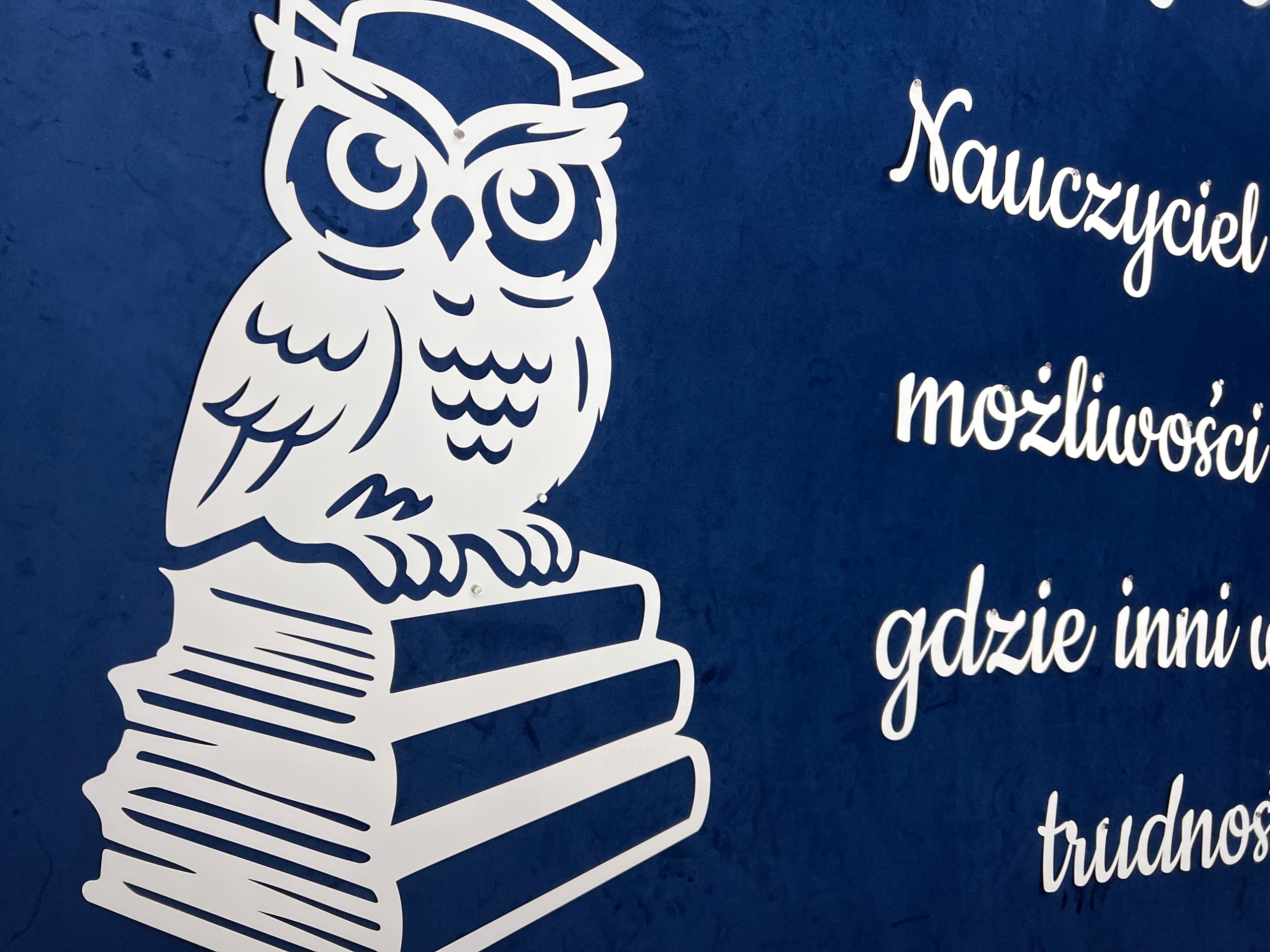 - Напис - Учитель бачить можливості, де інші бачать труднощі - Висота капітальної літери 14 см, Низькі 2 штук - 29 х 52 см - одного розміру одного твору
