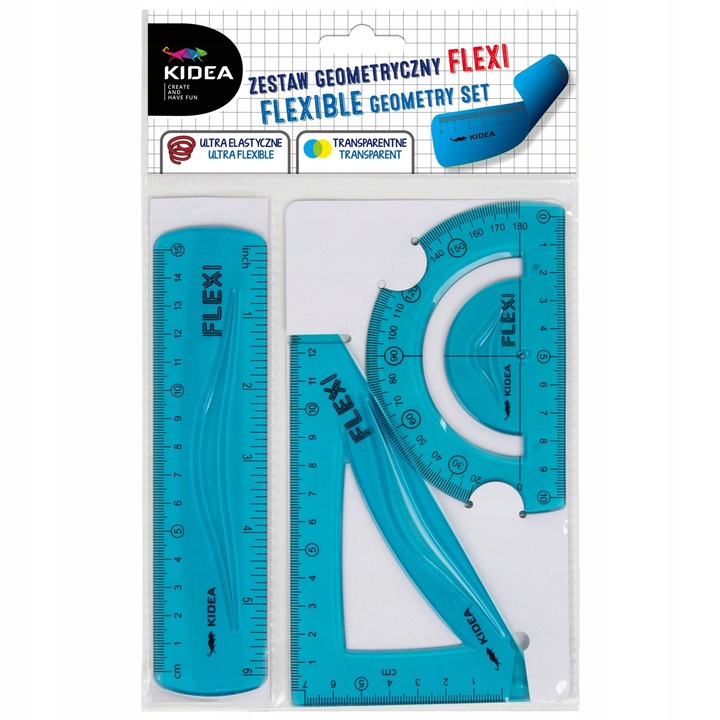 Геометричний набір Kidea 3 елементи, лінійка 15 см