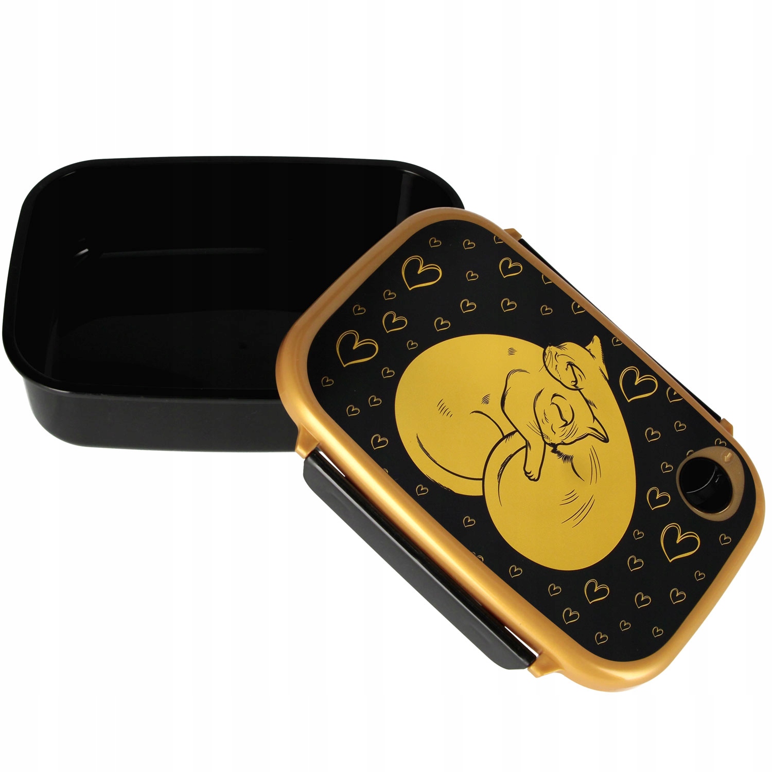 Нижня частина контейнера є одноколірною, тоді як кришка відрізняється барвистим, привабливим друком, натхненним солодкими кошенятами в елегантному, чорному та золотих виданнях.