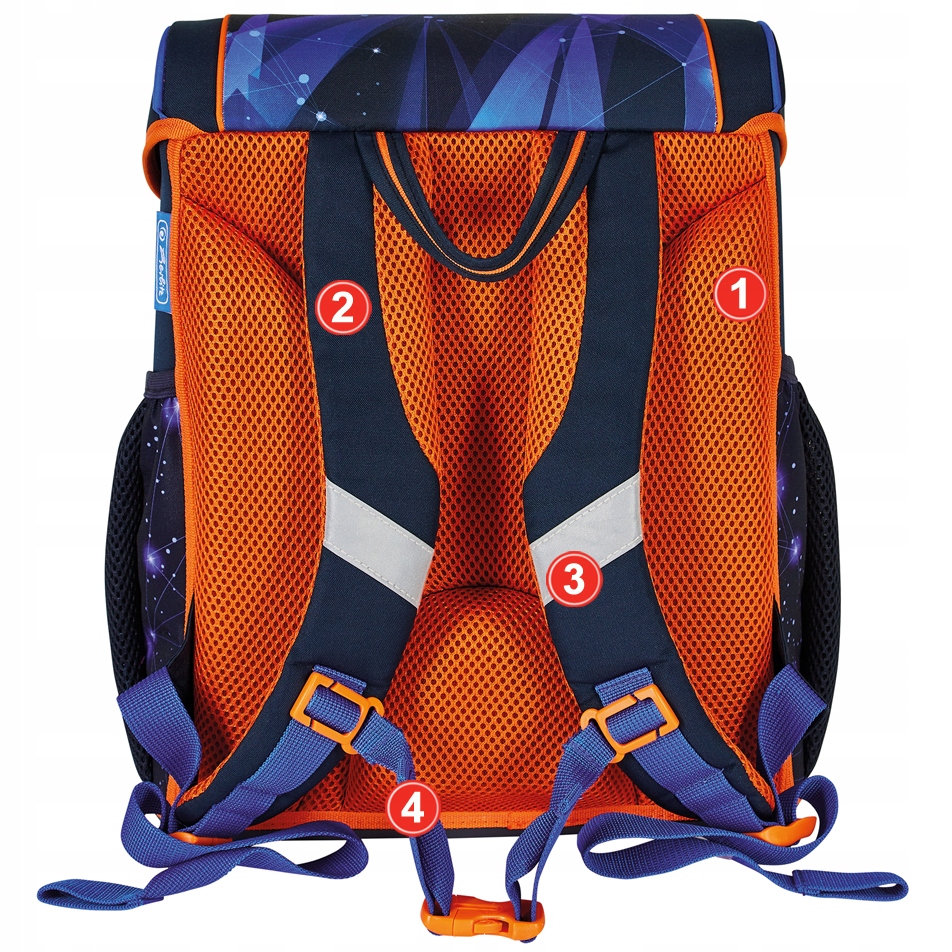Шкільний рюкзак Herlitz Loop має стабілізуючі ніжки та відбивачі 3M Scotchlite на передніх і бічних кишенях, а також на лямках. Зручна ручка дозволяє комфортно носити шкільну сумку.