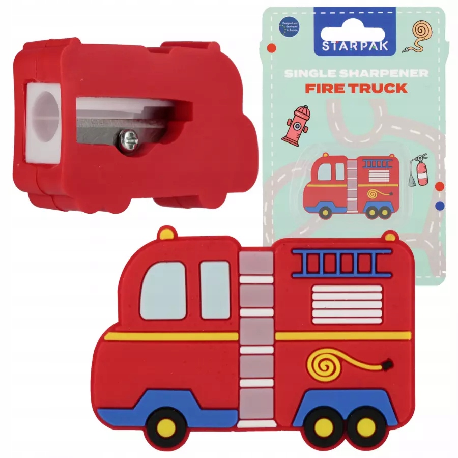 У випадку цієї точилки додатковою перевагою є те, що її гумовий корпус має форму пожежної машини. Точило одинарне і має відкриту конструкцію, що полегшує заточування.