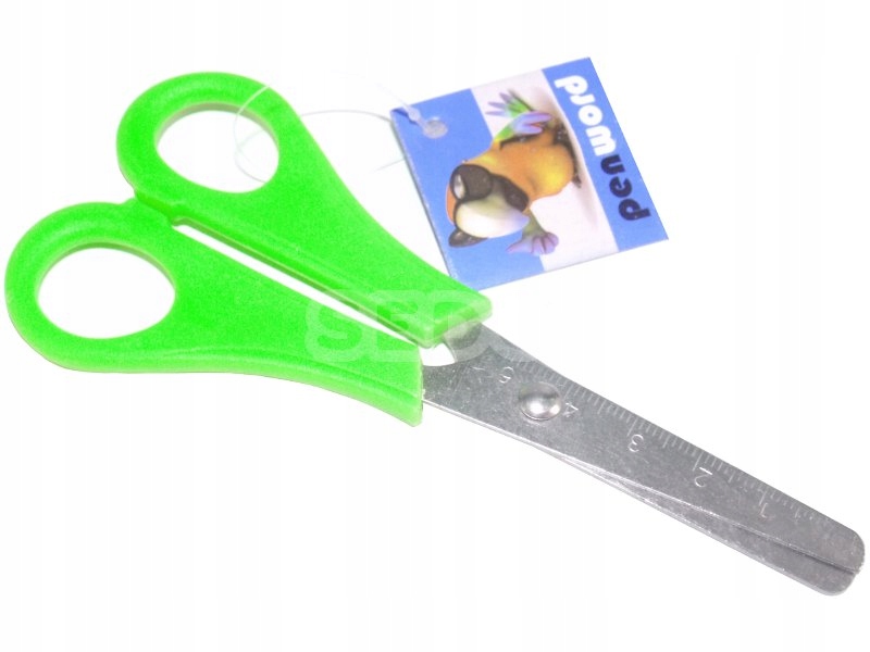 Дитячі ножиці зі шкалою для дитячого садка, школи або домашнього використання. Пластикова, кольорова, зручно профільована ручка ідеально лягає в маленькі ручки дитини. Закруглені кінці підвищують безпеку використання.