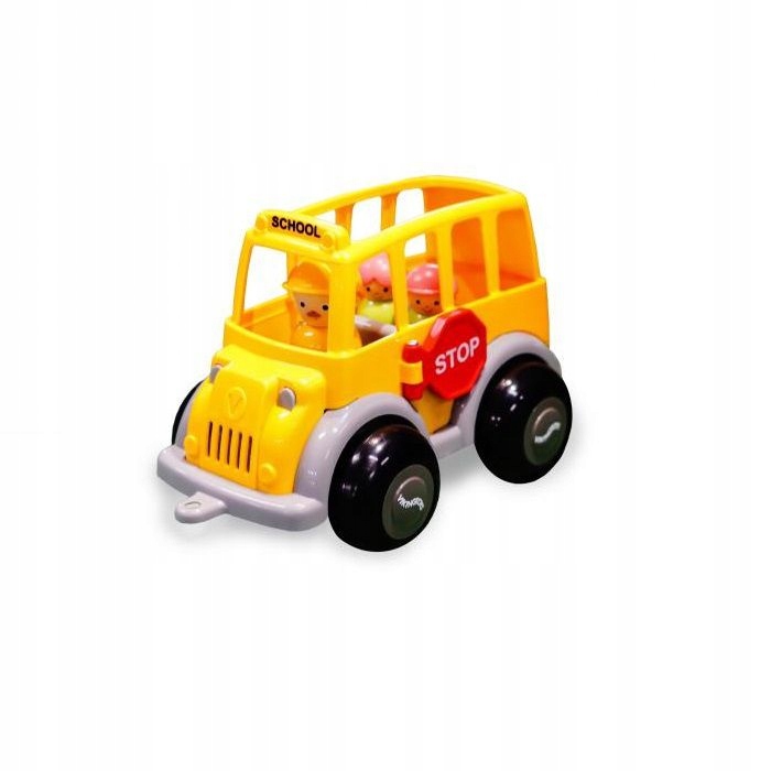 Шкільний автобус 21 см виготовлений з високоякісного м'якого пластику. Всередині автобуса знаходяться 3 різнокольорові фігури. Транспортний засіб міцний, а колеса з білого пластику тихі і не дряпають поверхню. Його також можна мити в посудомийній машині після того, як ви закінчите грати. Розмір упаковки: 21 х 11 х 13 см