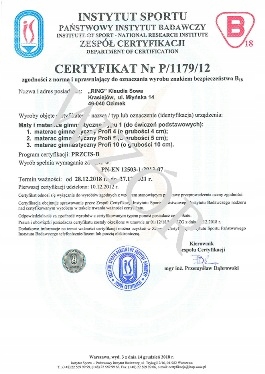 Щоб забезпечити вам найвищі стандарти, ми приділяємо особливу увагу безпеці, тому всі наші матраци мають сертифікат B18, виданий Інститутом спорту, і відповідають вимогам стандарту EN 12503.