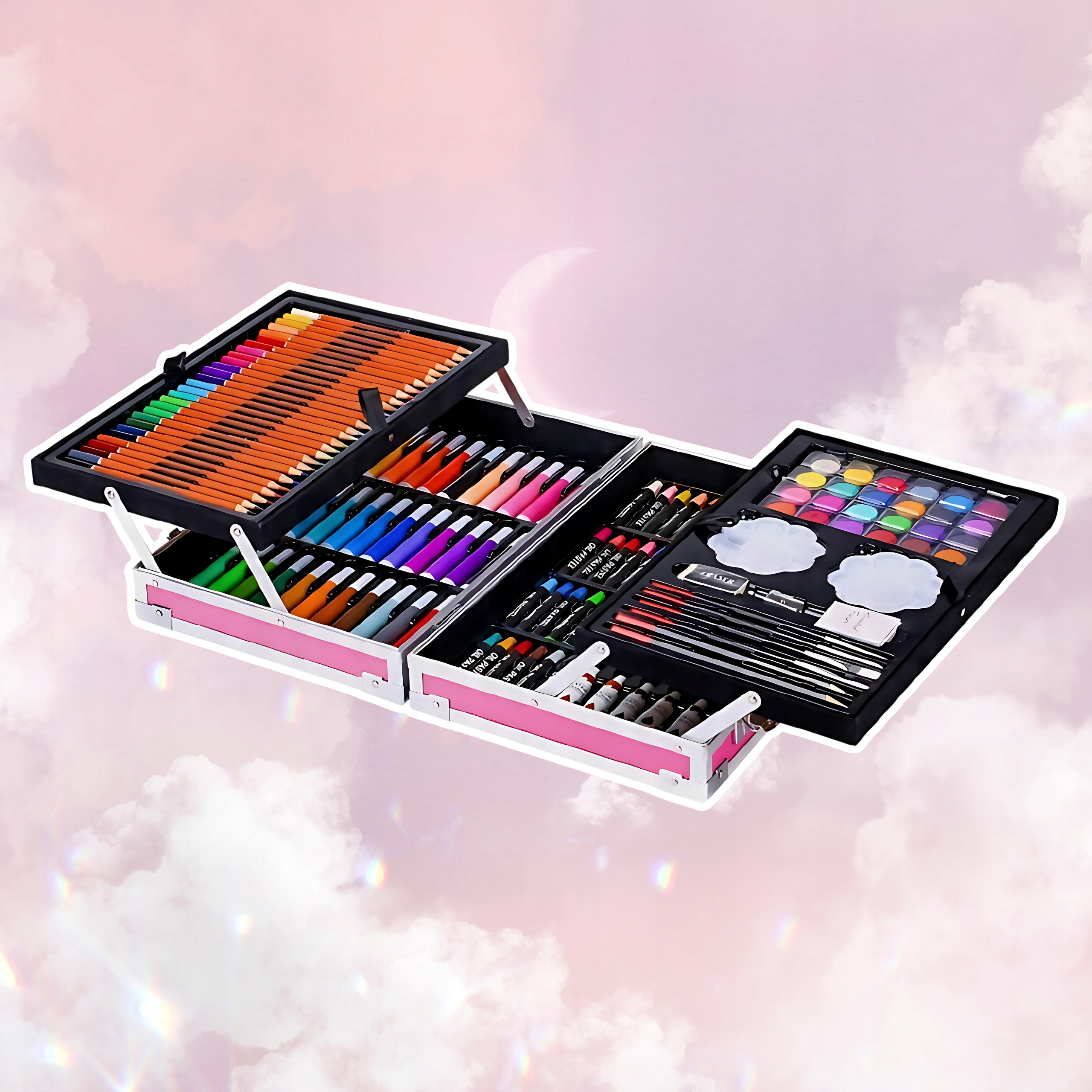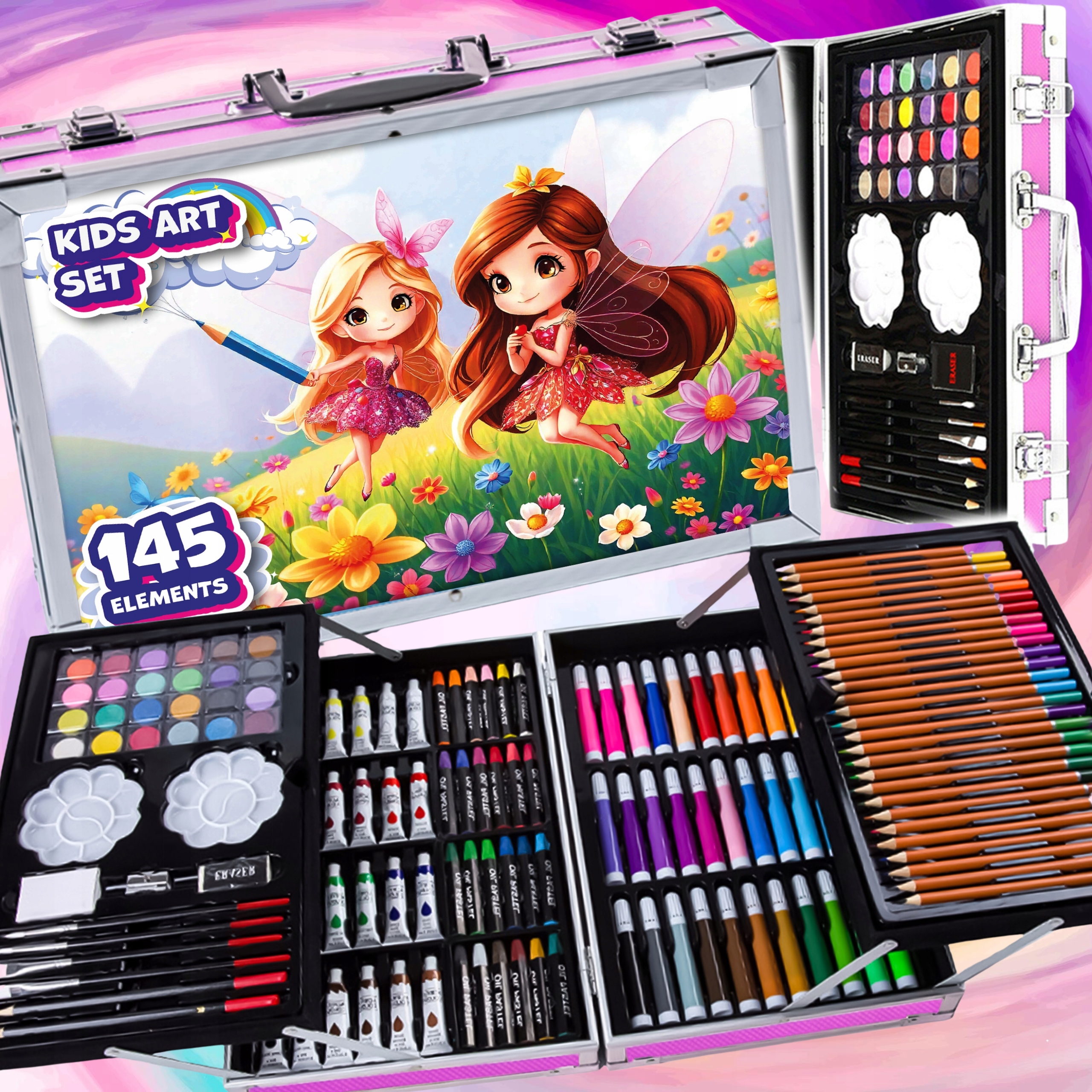 Почніть новий навчальний рік із набором, який поєднує в собі 169 ретельно відібраних елементів, практичну транспортну валізу та шкільну функціональність. Олівці, фломастери, фарби та аксесуари чекають, щоб кожен мистецький проект – від домашнього завдання до шкільного конкурсу – захоплював точністю та кольором.