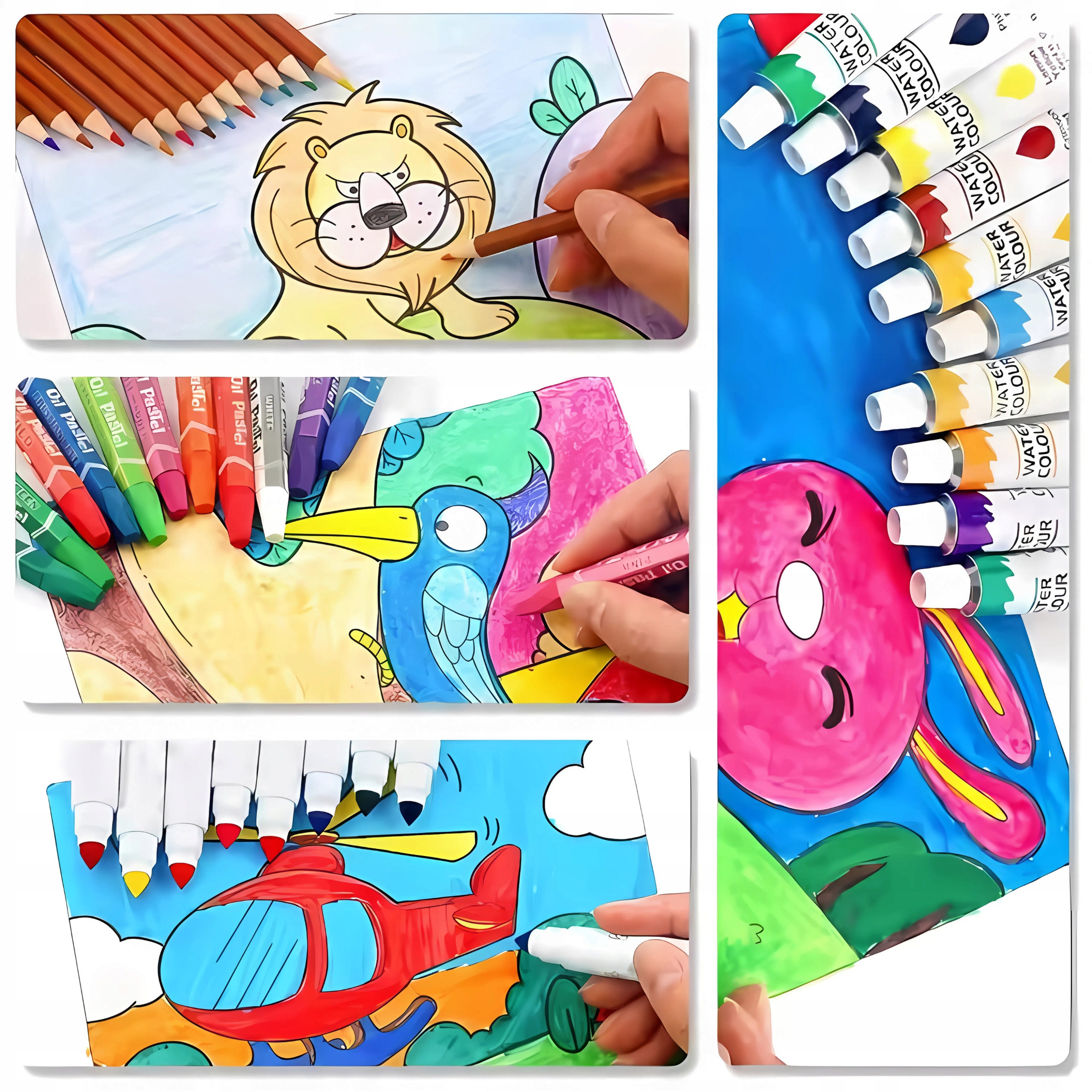 ➡️ Набір включає різноманітні олівці, тонкі та товсті фломастери, пастелі, водяні фарби та акварельні фарби