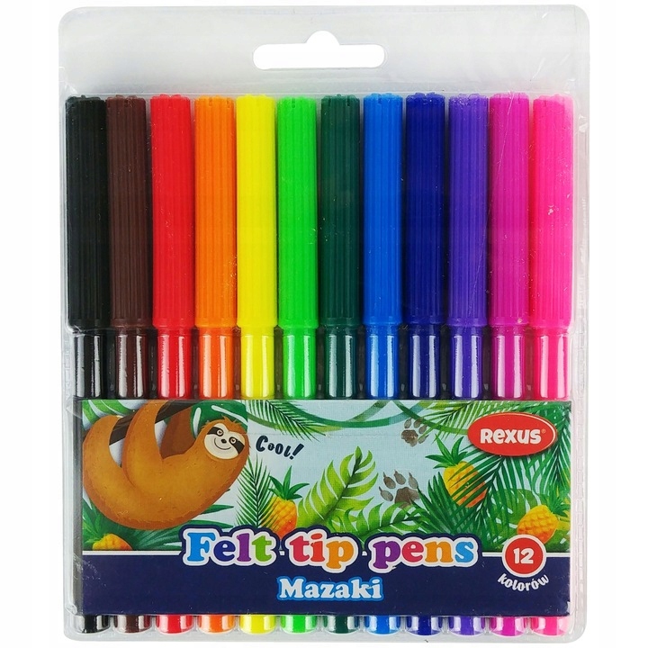 ➡️Фломастери Rexus, маркери шкільні, 12 кольорів