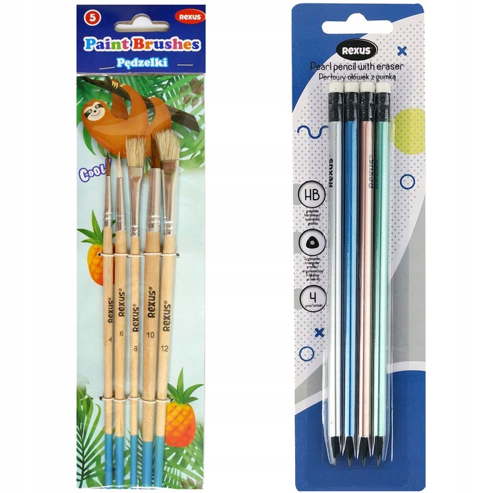 - Набір із колекції Beniamin складається з 5 натуральних пензлів різних розмірів: 2 плоских - розмір 8 і 12; 3 круглі - розмір 4, 6, 10