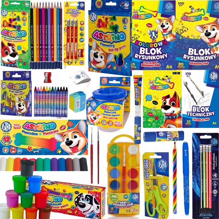1⃣ добре відома і сподобалася компанія, яка зосереджується як на функціональності,, аспектах безпеки, так і якістю продукції. Основні статті мистецтв з Astrino Animals - все, що потрібно вивчити, щоб вивчити, вже буде включено до цього набору - з блоків, олівців, ручок, олівців для малювання та клею.