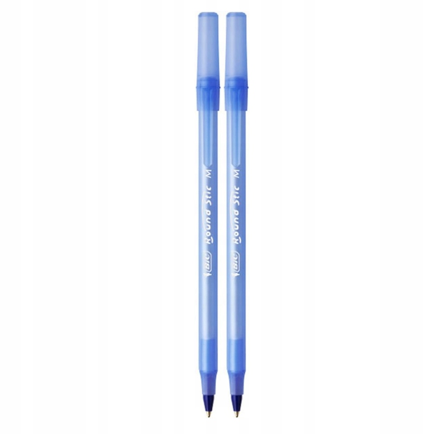 - 2 Bic Round Stic blue pens - light, comfortable, with clip