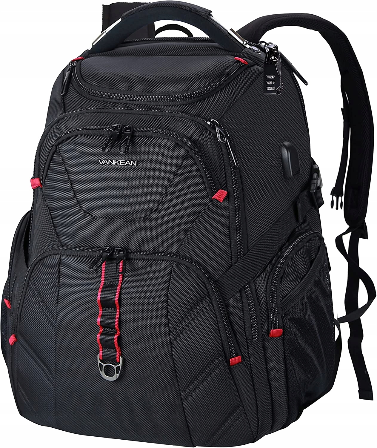 Дорожній рюкзак для ноутбука VANKEAN 17,3 дюймів, зручний для TSA, водонепроникний проти крадіжок Дуже великий рюкзак із кишенями RFID Студентські рюкзаки з портом USB для чоловіків, жінок, шкільна робоча сумка, чорна