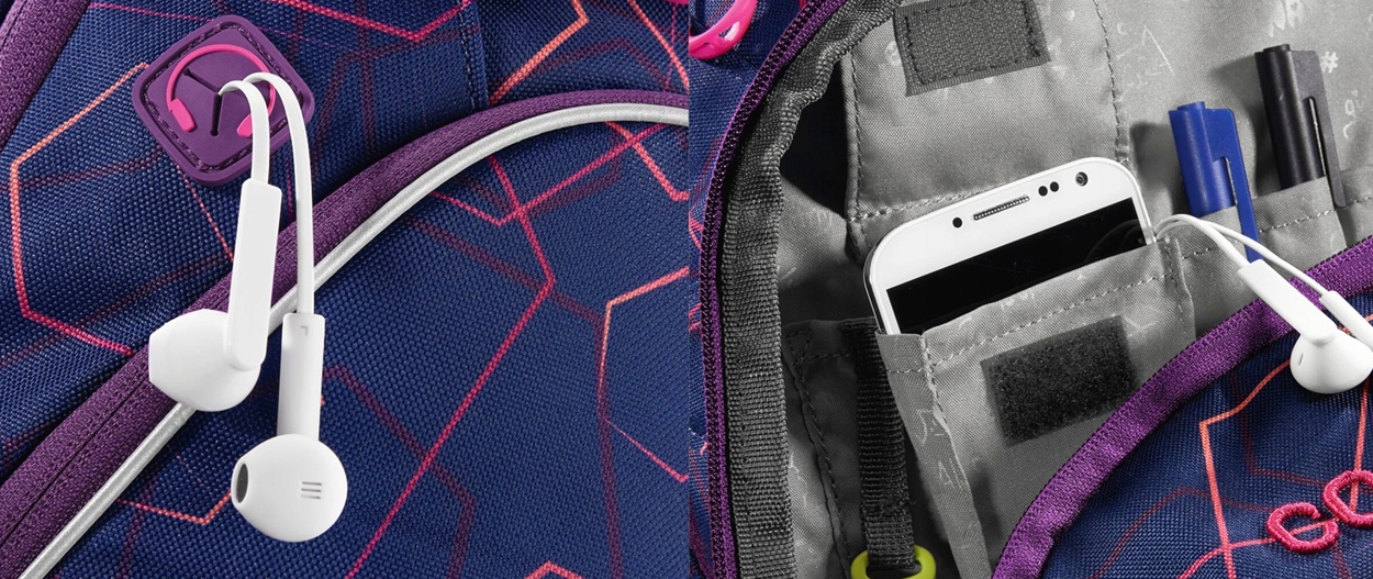 Простора передня кишеня з органайзером із роз’ємом для навушників.