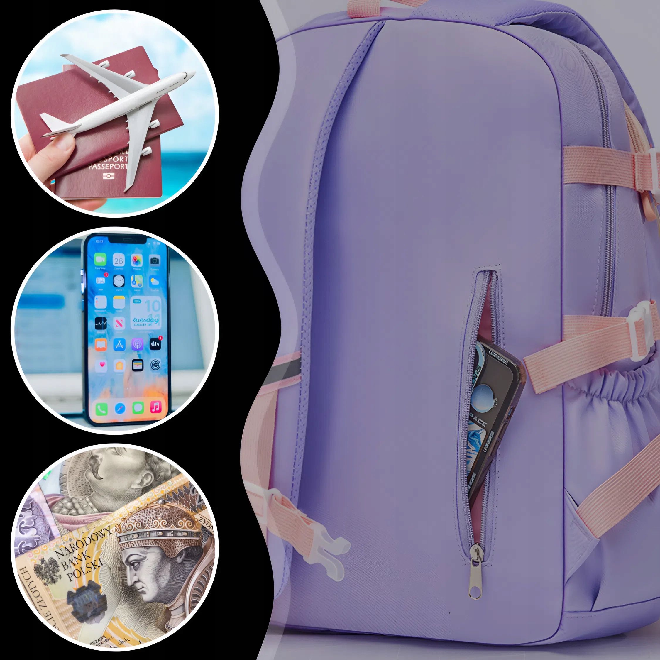 Рюкзак містить 2 основних відділення, 1 велику передню кишеню, 1 кишеню на блискавці, 2 маленькі передні кишені та 2 бічні кишені з поясом - усе для власного використання. місце.