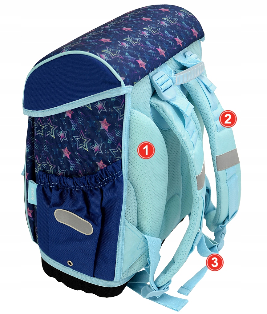 - Безліч світловідбиваючих смуг, розміщених на передній, задній і бічних сторонах шкільної сумки, підвищують видимість і, отже, безпеку вашої дитини на дорозі