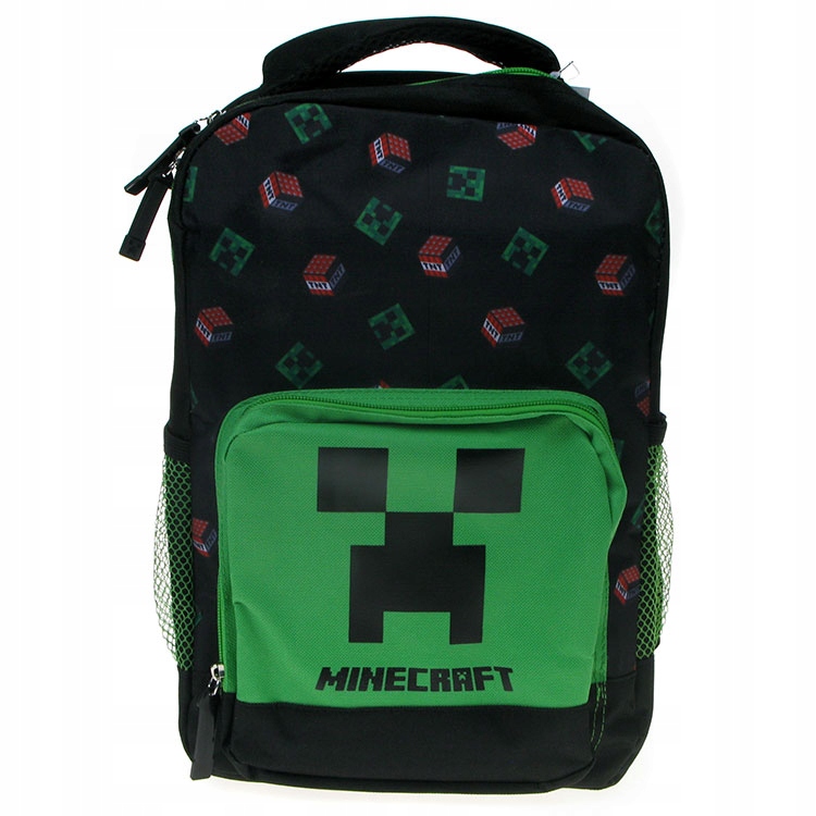 Рюкзак для фанатів Minecraft. Чорний рюкзак із зеленими вставками, принтом із зображенням голови Кріпера та динаміту (тротил). Спереду зелена кишеня у формі голови Крипера. Рюкзак для дітей дитячого садка або молодших класів з першого по третій (на нашу думку, підійде для школи під час молодшого навчання, коли не потрібно носити з собою книги). У рюкзак поміщається папка А4, кілька зошитів, пенал і ланч-бокс. Також стане в нагоді під час подорожей чи відпусток.
