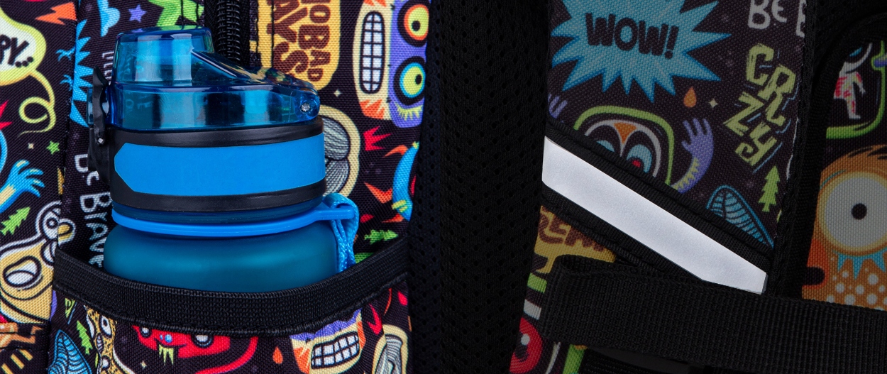 - Широкі профільовані лямки рюкзака, які можна вільно регулювати, і відбивачі на них забезпечать безпеку на дорозі.
