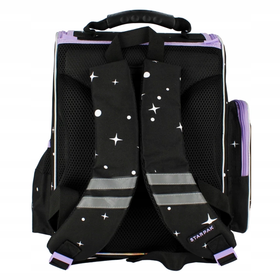 Шкільна шкільна шафа, виготовлена з матеріалів найвищої якості. Він легкий, має м'які, широкі, ергономічні брекети з регулюванням довжини, що збільшує комфорт використання. Анатомічно профілювані та жорсткі губками панелі, спина допомагає зберегти правильний силует дитини. Безпека дорожнього руху забезпечується численними світловідбиваючими елементами, які також є прикрасою рюкзака. Функціональність використання гарантується основною камерою, закритою відсіками, передньою кишеню та бічною кишеню, виготовленою з сітки, а другий - на блискавці. рюкзак. Бічна гнучка кишеня - це ідеальне місце для пляшки з водою або пляшкою з напоєм. Li>